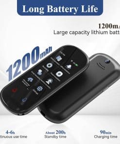 5. Práctico y confiable: Entendemos la importancia de la portabilidad, por eso nuestro dispositivo traductor está diseñado para ser ligero y fácil de llevar. Con su batería integrada de 1200mAh, puedes disfrutar de hasta 8 horas de uso continuo y hasta 7 días en modo de espera. Ya sea que estés en un viaje de negocios o explorando un nuevo país, este dispositivo será tu compañero de idiomas más confiable.