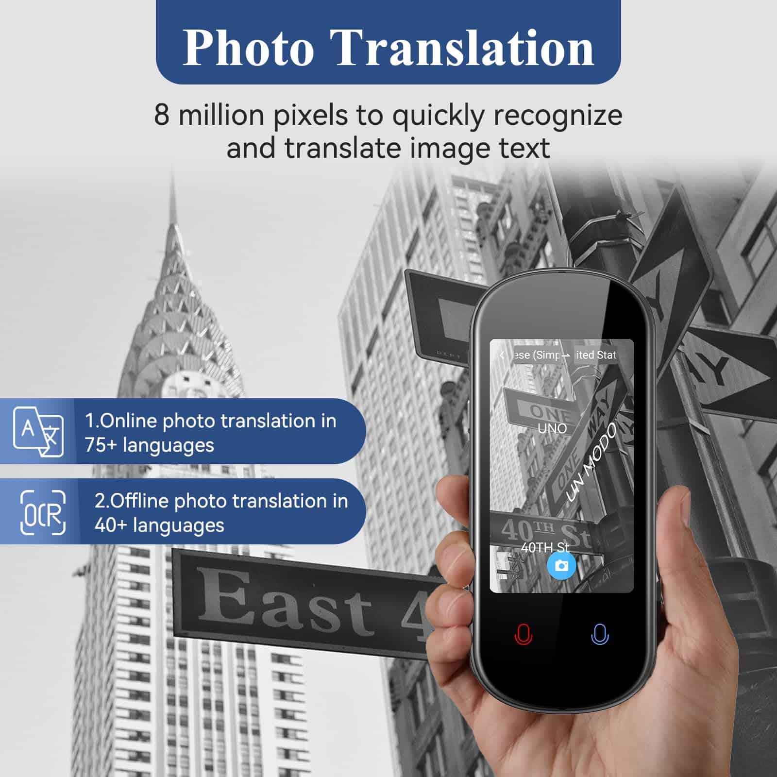 2. Múltiples traducciones offline: El dispositivo traductor de idiomas tiene traducciones offline en más de 18 idiomas, para que puedas disfrutar de viajes internacionales incluso sin Internet. Esto hace que el dispositivo de traducción sea ideal para viajes internacionales, reuniones de negocios o uso en áreas remotas sin acceso a Internet.