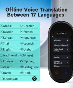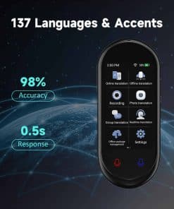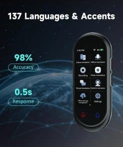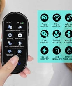Dispositivo traductor de idiomas ultra portátil con ChatGPT Ai Translator, que ofrece traducción de voz en tiempo real de 2 vías en hasta 138 idiomas tanto en línea como sin conexión. Este traductor de idiomas es preciso y rápido, con una tasa de precisión del 98% en la traducción en línea. Además, es pequeño y ligero, lo que lo convierte en el compañero perfecto para viajar, estudiar o trabajar. Con una batería recargable de litio de larga duración, puede funcionar durante 8 horas continuas y en espera durante 7 días con una sola carga. La cámara de alta definición integrada admite la traducción de fotos en línea de hasta 74 idiomas y la traducción sin conexión de 40 idiomas, lo que facilita la lectura de menús, señales, revistas, etiquetas y más en diferentes idiomas. Equipado con la última tecnología de inteligencia artificial, este traductor ofrece una respuesta rápida con una precisión de hasta el 98% en tiempo real. Con solo tres botones y una pantalla táctil HD de 3 pulgadas, el traductor de idiomas es fácil de usar para todos. Además, la aplicación ChatGPT le permite disfrutar de una experiencia de comunicación más inteligente, junto con una función exclusiva de cambio de divisas. ¡Hazte con tu dispositivo traductor de idiomas ahora y descubre un mundo de comunicación sin barreras!