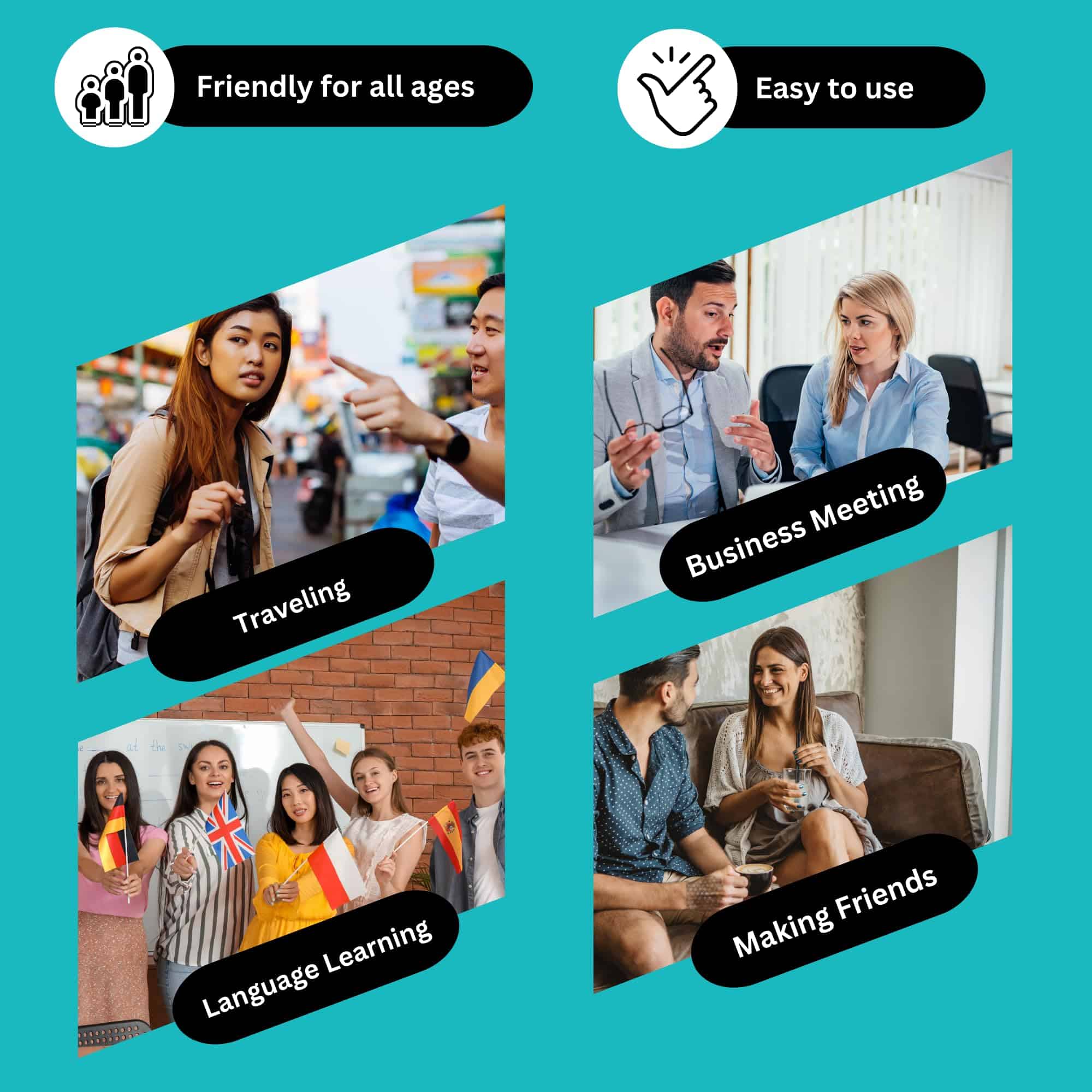 1. Traducción instantánea en más de 60 idiomas El traductor Enence PRO es un potente dispositivo traductor de idiomas que admite más de 60 idiomas y acentos, garantizando una comunicación fluida en todo el mundo. Ideal para viajes, negocios y uso diario.