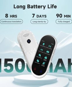 6. Duración de la batería larga. Batería de iones de litio recargable incorporada de 1500 mAh, el traductor HASLED Z8 puede funcionar de forma continua durante 6-8 horas con una sola carga, en espera durante 7 días, y solo tarda 1-2 horas en cargarse por completo. También cuenta con reducción de ruido avanzada y un altavoz único para un reconocimiento preciso del habla en tiempo real incluso en entornos ruidosos. Este dispositivo de traducción es perfecto para viajes, aprendizaje de idiomas extranjeros, viajes de negocios.