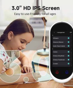 4. Tamaño portátil. Este traductor portátil es compacto y ligero, y se puede llevar fácilmente en bolsillos y mochilas. La pantalla táctil HD de 3 pulgadas le permite leer fácilmente el texto traducido; el modo de operación dual de botones táctiles y botones físicos facilita su uso para personas de cualquier edad. Pesa solo 100 gramos.