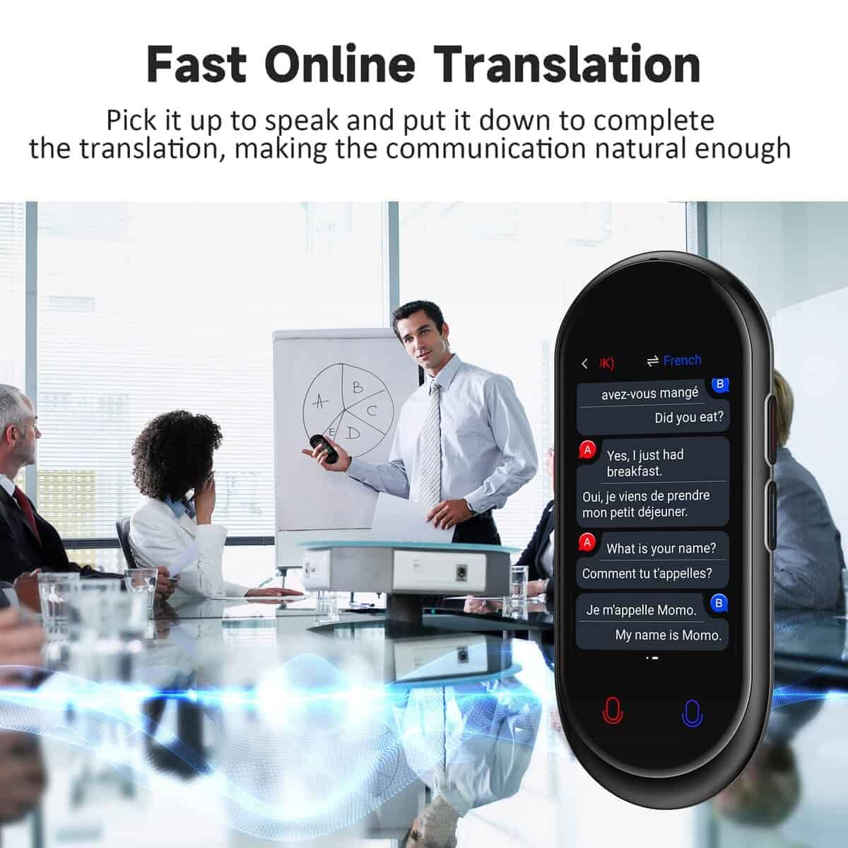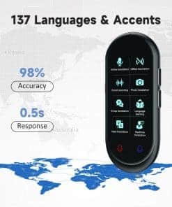 Z8 es un dispositivo de traducción de voz bidireccional en tiempo real. Adopta el mejor motor de traducción en la nube con una precisión del 99% y un tiempo de respuesta de solo 0.1 segundos. Admite la traducción mutua de 137 idiomas y múltiples acentos, lo que te facilita viajar a más de 200 países. Traducción fuera de línea en 8 idiomas principales Admite traducción fuera de línea entre 17 idiomas: inglés, chino, japonés, coreano, ruso, alemán, francés, italiano, español, portugués, holandés, vietnamita, indonesio, hindi, tailandés, taiwanés, árabe (Arabia Saudita). La comunicación nunca ha sido más fácil o conveniente, ya que puede traducir entre cualquier combinación de idiomas compatibles. El traductor de idiomas Z6 puede cambiar inteligentemente de la traducción en línea a la traducción fuera de línea cuando la red inalámbrica se debilita. Descarga de forma gratuita los idiomas que necesitas y úsalos de por vida. NOTA: El paquete de traducción fuera de línea debe descargarse previamente en un entorno con internet antes de usarlo. Nuestro traductor de idiomas instantáneo tiene una cámara trasera integrada de 8 millones de píxeles y tecnología OCR profesional, que puede realizar traducciones de imágenes en tiempo real en 74 idiomas en línea y 40 idiomas fuera de línea. 143 Idiomas en línea Hebreo, hindi, húngaro, islandés, indonesio, italiano, italiano (Suiza), japonés, javanés (Indonesia), kannada (India), kazajo (Kazajstán), camboyano (Camboya) , coreano, laosiano, letón, lituano , macedonio (norte) , malayo, malayalam (India), marathi (India), mongol (Mongolia), nepalí, noruego, persa, polaco, portugués, portugués (Brasil), punjabi (gurmukhi, India), rumano, ruso, serbio, sinhala (Sri Lanka), esloveno, español, español (Argentina), español (Bolivia), español (Chile), español (Colombia), español (Costa Rica), español (República Dominicana), español (Ecuador), español (Guatemala), español (Honduras), español (México), español (Nicaragua), español (Panamá), español (Paraguay), español (Perú), español (Puerto Rico), español (Uruguay), español (EE. UU.), español (Venezuela), español (Indonesia), español (Kenia)