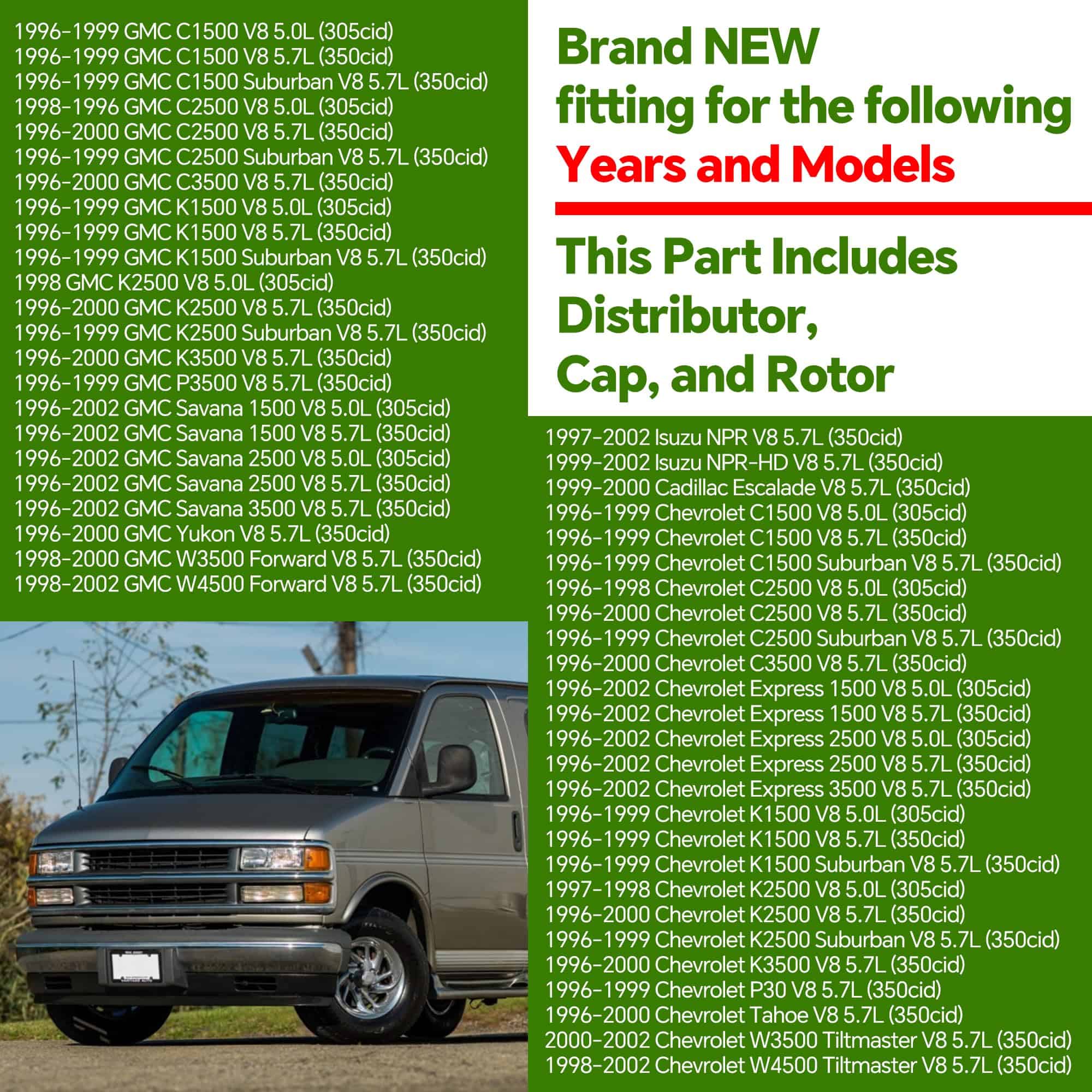 1. Aplicación: Compatible con GMC Serie C/K 1500/2500/3500, Savana 1500/2500/3500; Chevrolet Serie C/K 1500/2500/3500, Express 1500/2500/3500; Isuzu NPR; Chevrolet Tahoe (Para más modelos, por favor verifique los detalles en Compatibilidad más abajo).