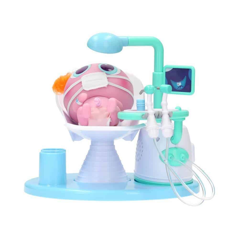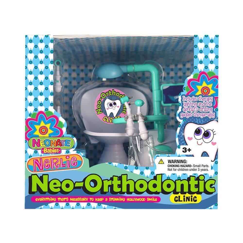 The newest set to help your Nerlie baby maintain that Hollywood smile! and a perfect combo with the NERLIE NEO-ORTHODONTIC CORRECTIONAL DEVICE This set includes: 2 masks, 1 dentist chair,1 dentist station, 2 dentist accessories, 1 dentist cup, and 1 tray. Nerlie Baby not included.Requires 2 AAA batteries, not included.