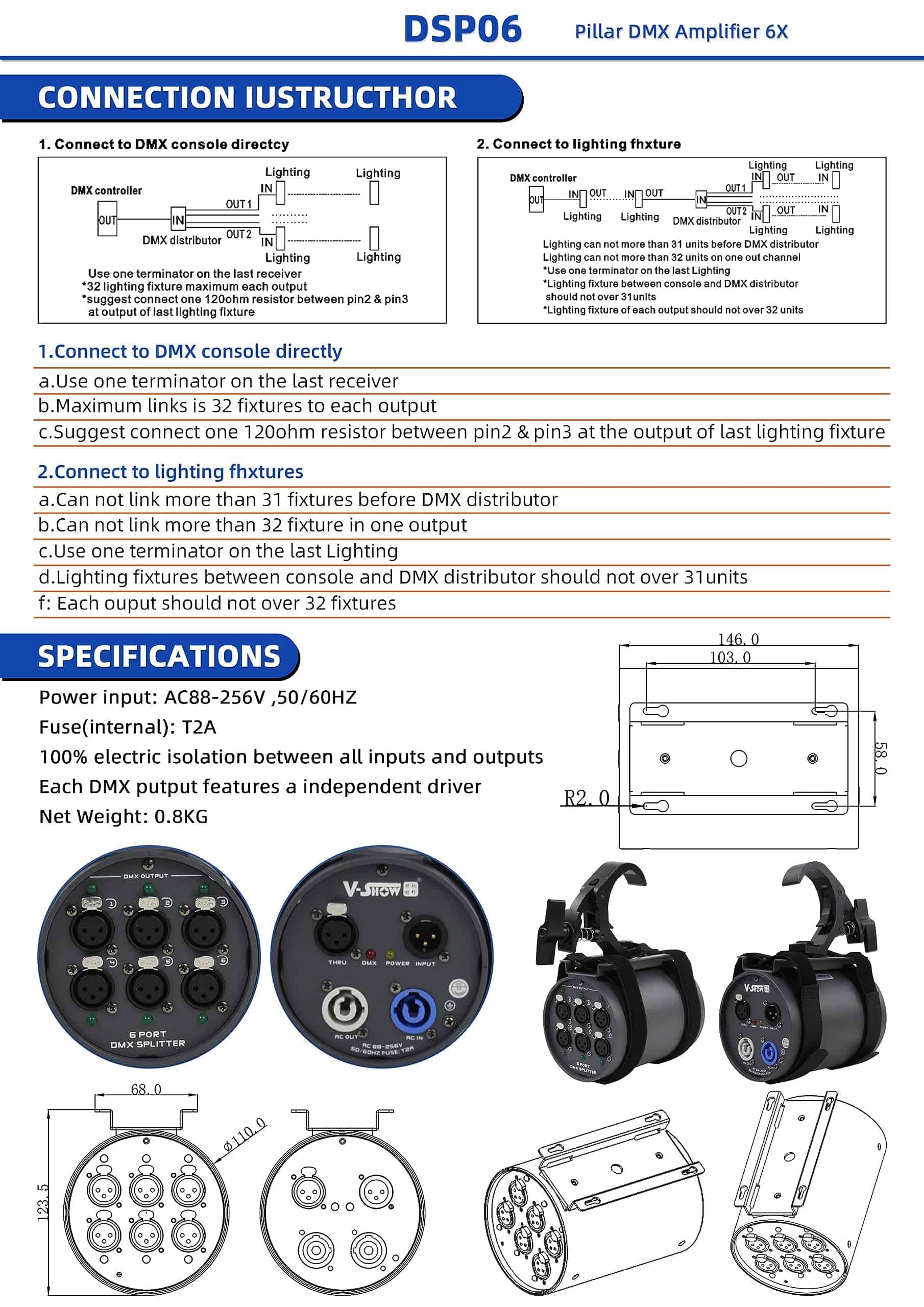 Divisor de 6 vías aislado DMX V-Show – Amplificador divisor