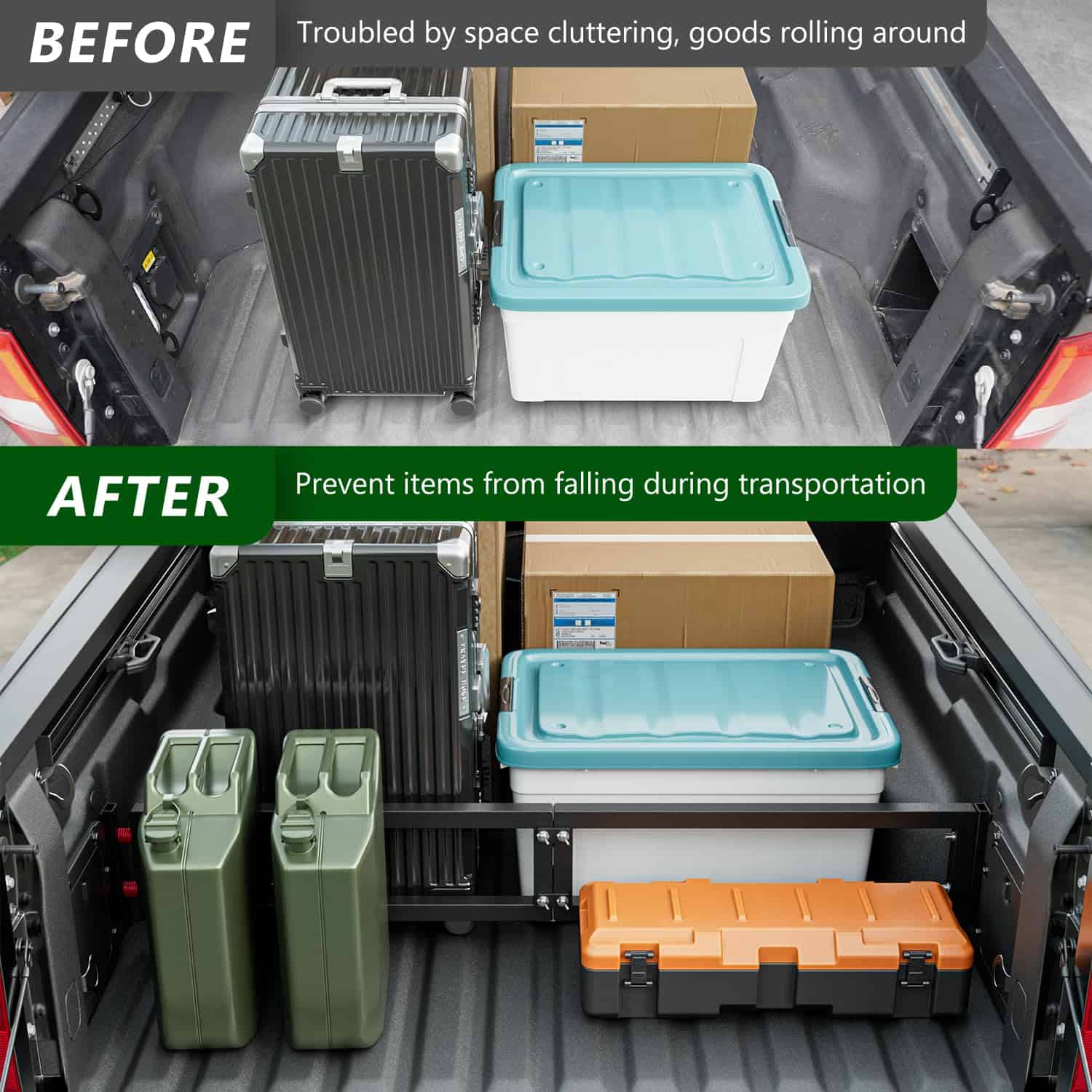 Our truck bed organizer compatible with 2022-2025 Ford Maverick pickup truck is designed specifically for the original vehicle, ensuring a perfect fit. Made of high-quality aluminum alloy, this cargo organizer is strong, durable, and lightweight. It adds extra storage space to your truck bed, allowing you to store groceries securely and prevent them from moving around while driving. The easy installation process makes it convenient for you to set up. Prior to leaving the factory, our storage organizer undergoes strict quality inspections to guarantee its reliability. Reach out to us if you have any inquiries or require assistance.