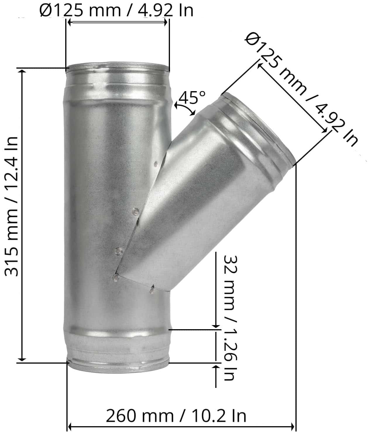 Divisor de conducto de 5 pulgadas a 45 grados para