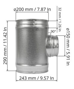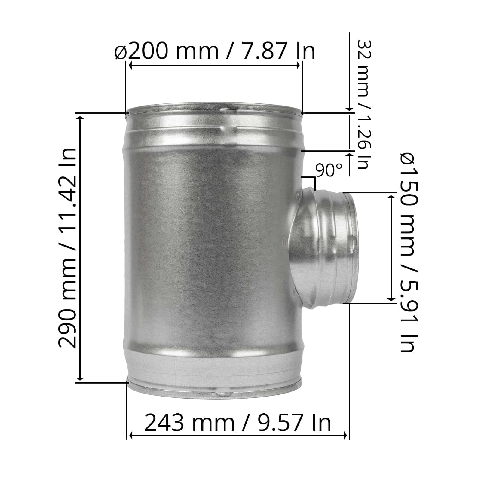 Divisor de conducto de 8 pulgadas a 90 grados con rama de 6