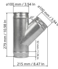 1. Este es un conector de tres vías con una rama. El diámetro principal del conducto es de 3.94 pulgadas. El diámetro de la rama es de 3.94 pulgadas. Ángulo de la rama: 45 grados. Con una manguera de ventilación de secadora se puede conectar a ventiladores de escape, tapas de ventilación de secadoras y sellos de ventilación.