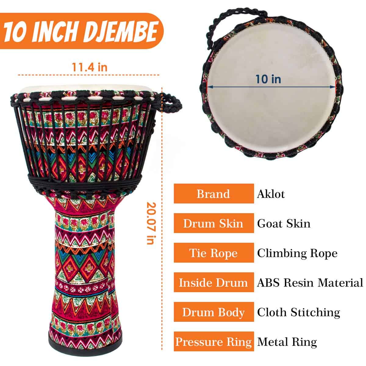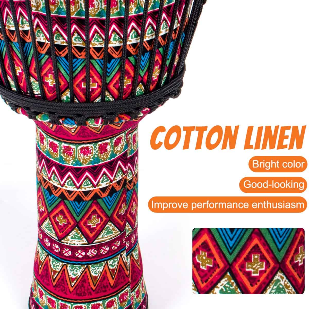 Djembe Drum, AKLOT Tambor Africano Cubierto de Tela de