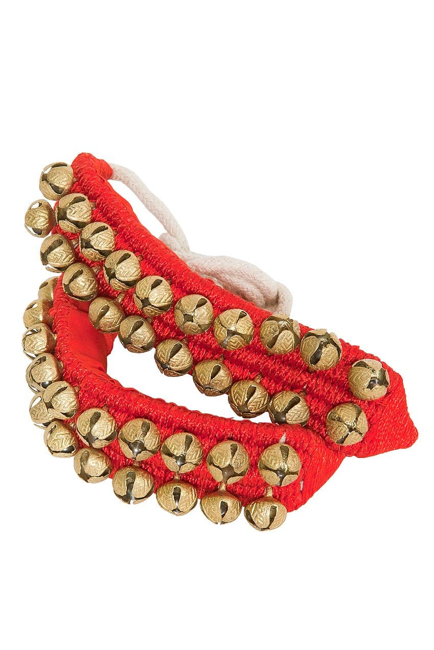 Añadiendo el sonido adecuado a diversas actividades y actuaciones, este accesorio común de danza del vientre y danza india es muy versátil y puede ser usado en los tobillos o muñecas, y también puede colgarse en tambores. Cada almohadilla roja está equipada con 2 hileras de 10 campanillas de bronce de 5/8″, 20 campanillas en total, produciendo algunos jingles muy potentes. Cada almohadilla tiene almohadillado en su interior y puedes atarte cada una alrededor de tu tobillo. Las campanillas de bronce son del estado indio del norte de Uttar Pradesh, que es conocido por sus fabricantes de bronce de calidad. Las campanillas para tobillo se utilizan tradicionalmente en el estilo de danza del norte de la India llamado Kathak. La danza Karthak evolucionó a partir de los bardos nómadas de la antigua India del norte, conocidos como Kathakars o cuentacuentos. A lo largo de los siglos, la danza Kathak incorporó elementos de danza de Persia y Asia Central; hoy en día es una forma de arte rica con rastros de movimiento tribal, bhakti, templo y ritual.