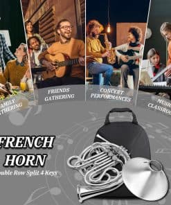 1. Esta doble trompa francesa está hecha de bronce fosforado, que es ligero y fácil de sostener. Tiene las teclas estándar profesionales F/Sib y tiene un tono brillante, suave y hermoso. Adopta un diseño dividido y la campana es desmontable del cuerpo del tubo. Es fácil de desmontar y fácil de transportar.