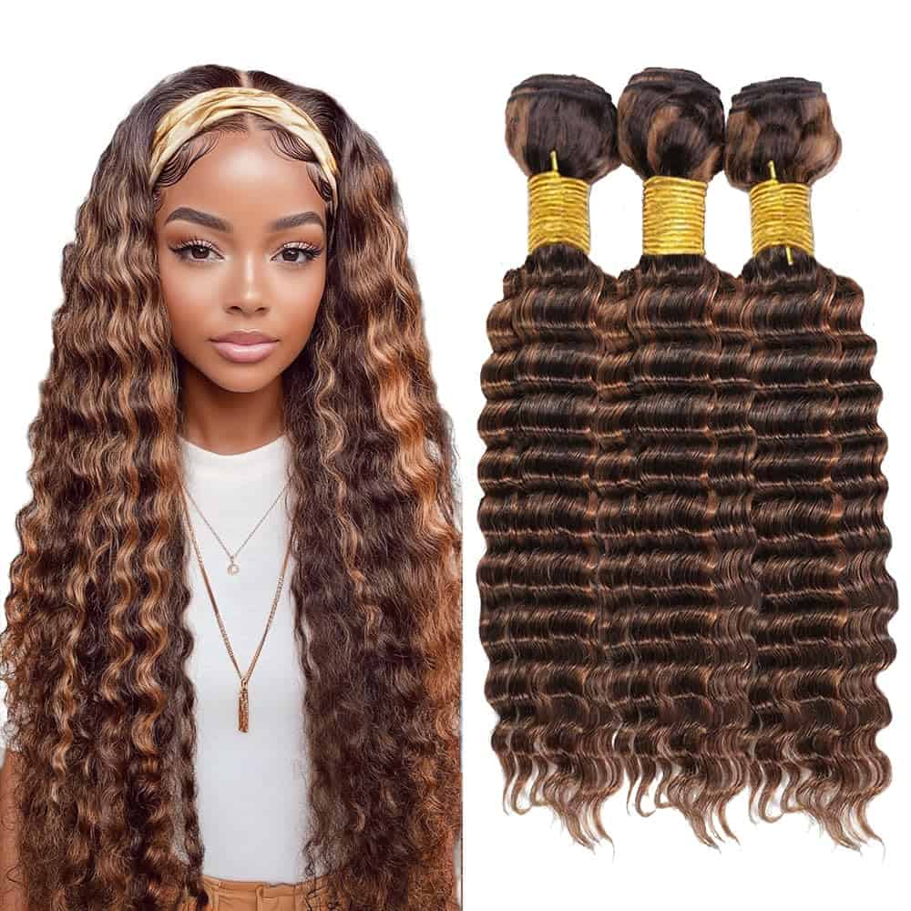 1. Material de los Paquetes de Cabello: Paquetes de Cabello Rizado Profundo Destacado P4/30 de Grado 8A de Cabello Humano Brasileño, Saludable y Fuerte, Suave y Sedoso.