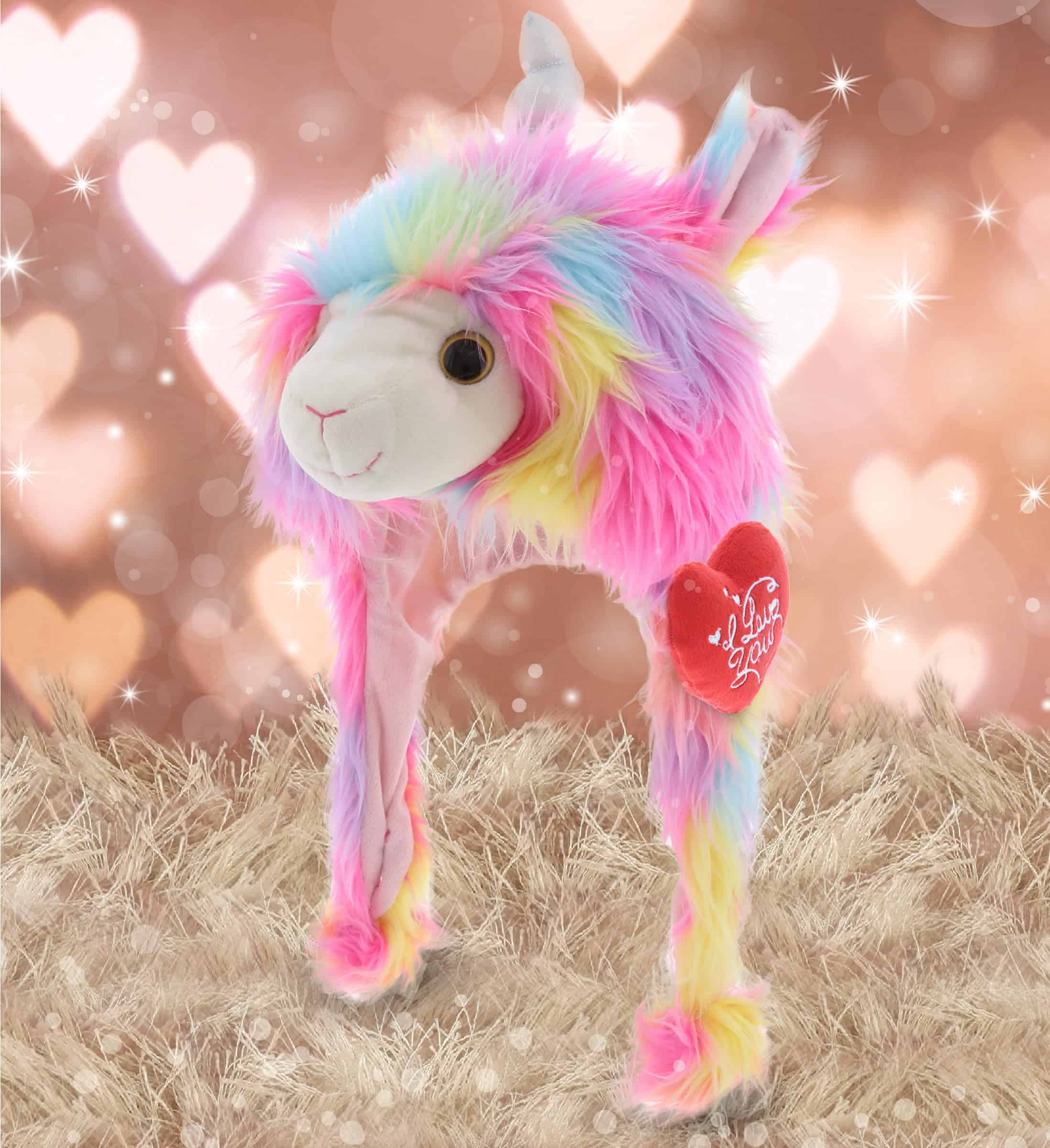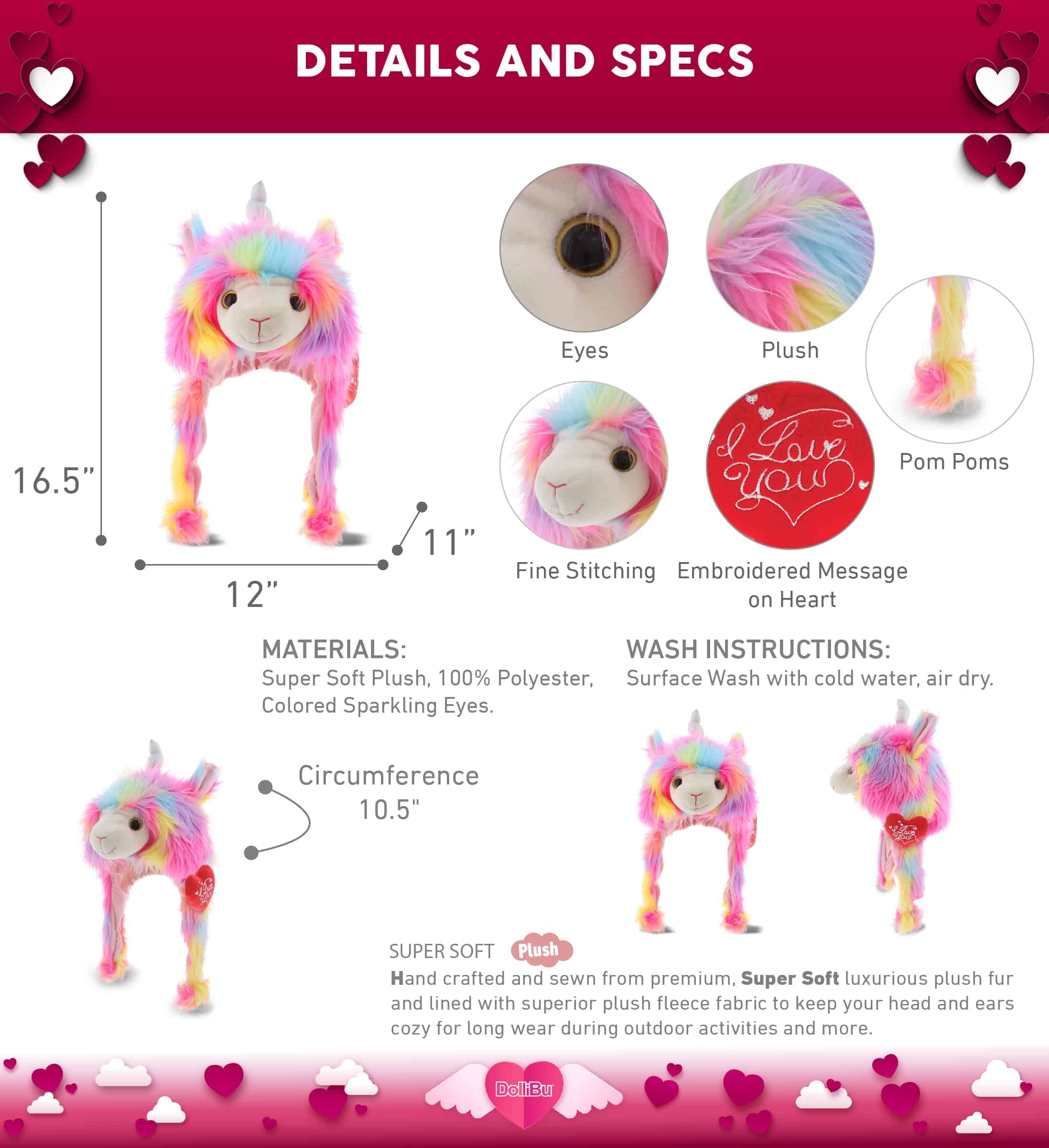 DolliBu I Love You Plush Rainbow Llamacorn Hat – Tierno