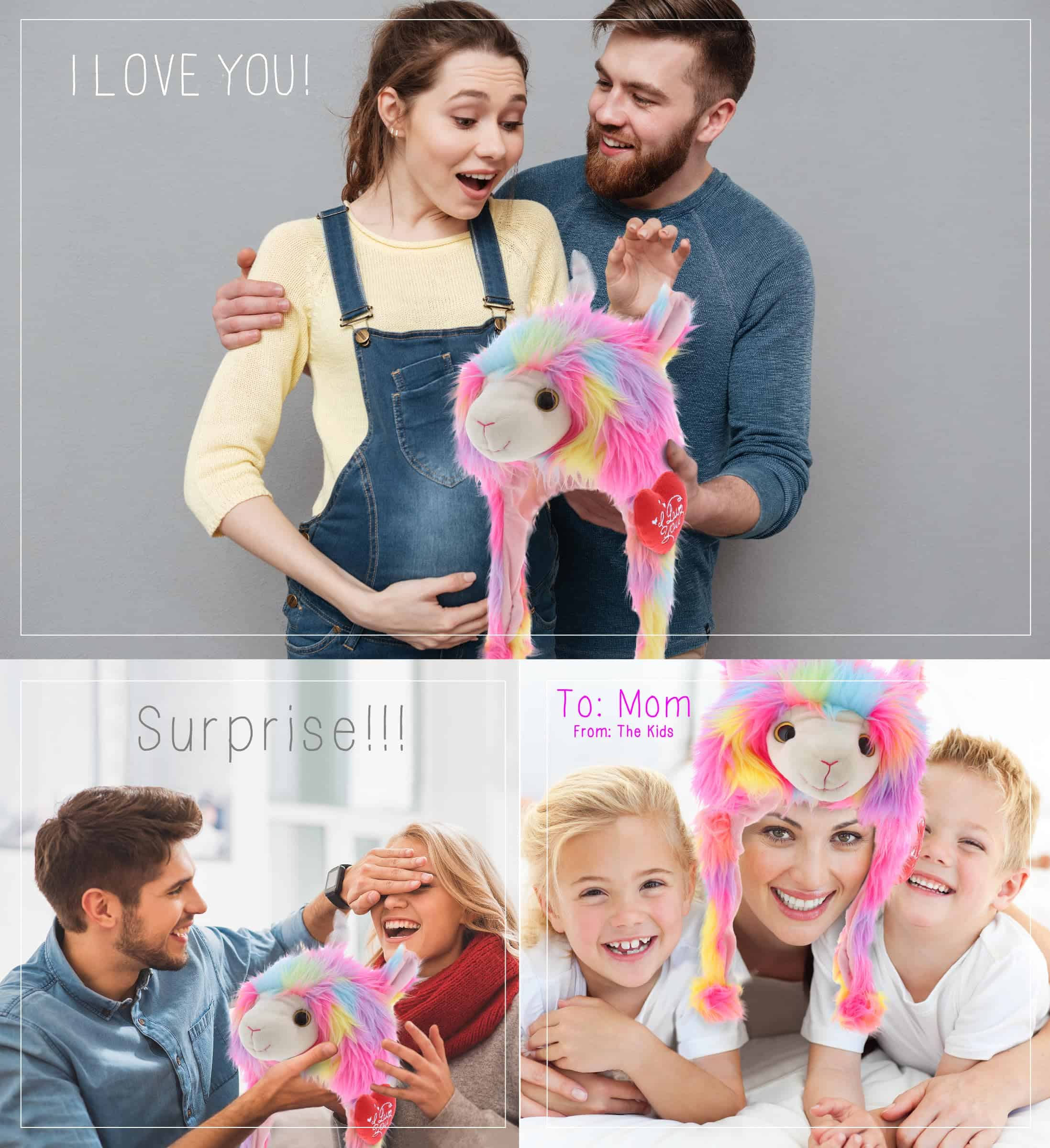 El DolliBu I Love You Peluche Gorro de Llamacornio es un regalo perfecto para cualquier ocasión especial, ya sea el Día de San Valentín, cumpleaños, aniversario o simplemente para recordarle a alguien lo mucho que lo amas. Este Gorro de Llamacornio de Peluche está diseñado con un mensaje bordado de ‘Te Amo’ en un corazón rojo, lo que lo convierte en un regalo romántico y conmovedor. El gorro de peluche está hecho de materiales de alta calidad, con un suave peluche que garantiza horas de abrazos y caricias. ¡Sorprende a tus seres queridos con este adorable Peluche Gorro de Llamacornio y haz que cualquier día sea especial y memorable!