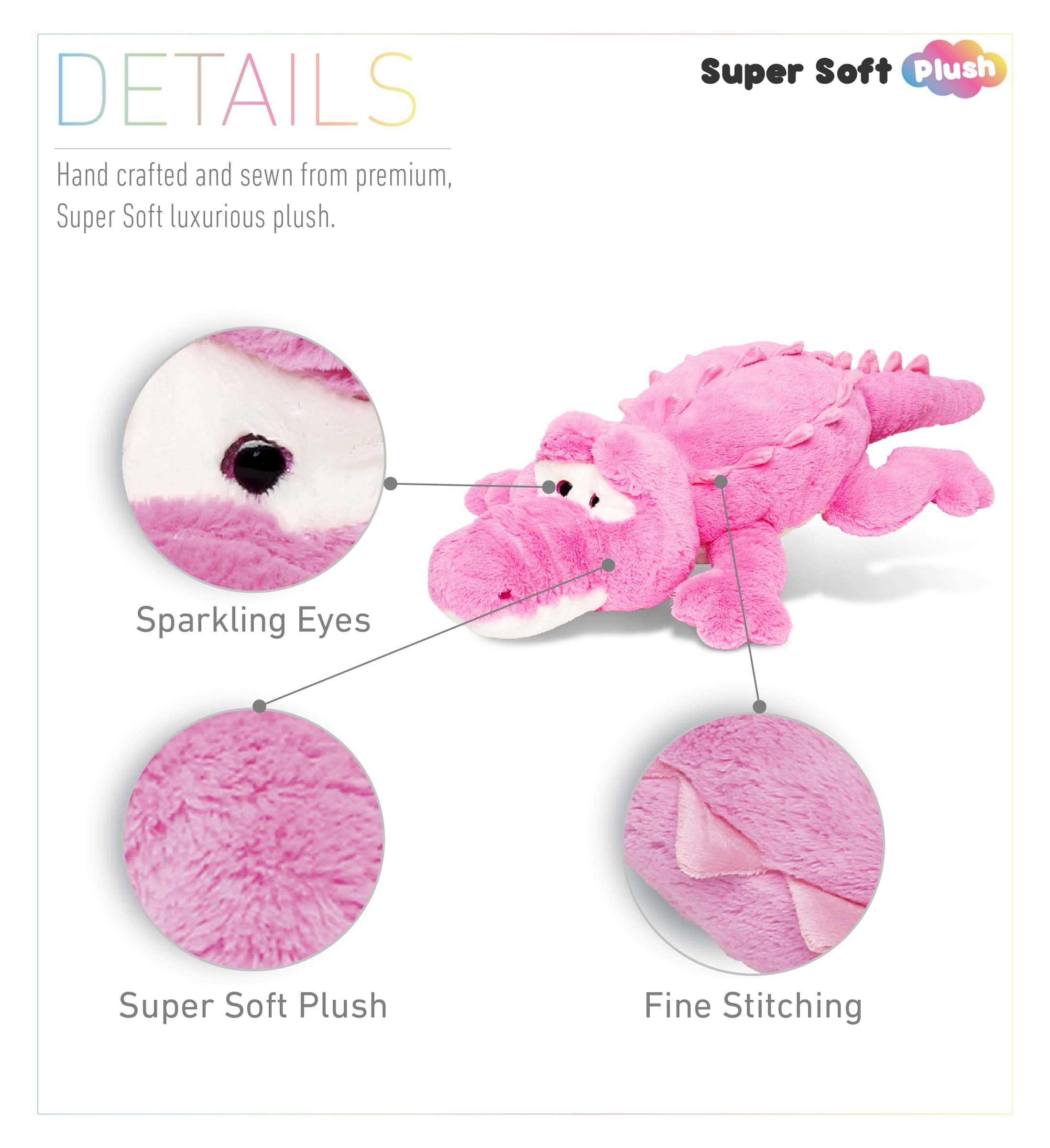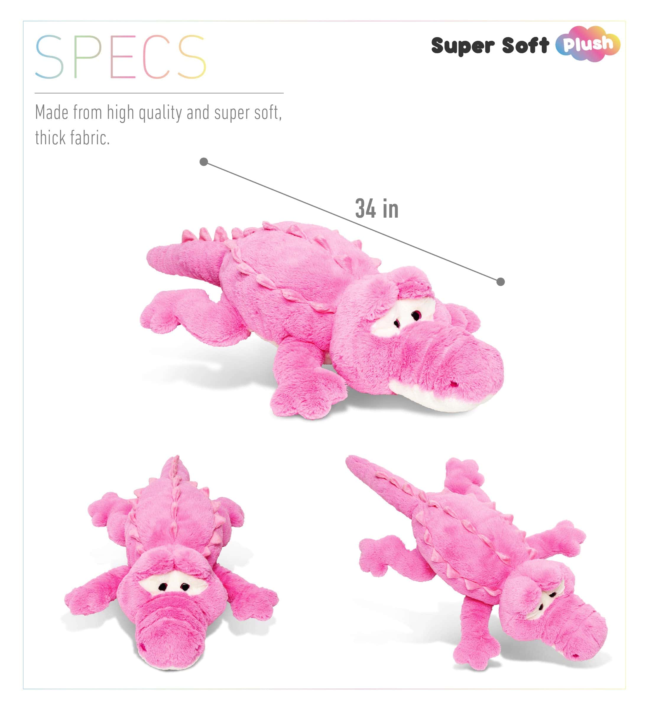 Haz sonreír a tu hijo con este adorable Peluche de Cocodrilo Puzzled de 33″. Este peluche entretendrá a tu pequeño a aprender sobre animales, desde criaturas salvajes hasta criaturas marinas que sería un gran escalón hacia el aprendizaje. Juguete de peluche educativo que ayudaría a los niños a mejorar su imaginación, lo cual es una gran ventaja antes de ir al jardín de infancia. Este será su compañero instantáneo favorito cuando viajen. Este peluche es ideal para usar como premios de juegos, recompensas, incentivos, artículos sorpresa para bolsas, favores de fiesta, accesorios y/o almohada de viaje. Puedes sorprender a tus seres queridos en sus cumpleaños con este peluche. Excelente regalo para eventos especiales como baby showers, revelación de género, bautizos y otras ocasiones. Incluye 1 Peluche de Cocodrilo Rosa que mide 33″. Un juguete de peluche único que es el sueño de cada niño y puede ser una gran adición a su colección de peluches. Presenta un color vibrante y rico, suave peluche exterior, alto estándar de seguridad, relleno parcial de frijoles y un acento de material mixto que haría que un coleccionista de peluches esté emocionado de tener esto en sus estantes de exhibición. Hecho de materiales de primera calidad y tela 100% poliéster que garantiza que sea resistente y duradero. Un muñeco de peluche resistente que es ligero y fácil de llevar. Libre de BPA y no tóxico, lo cual es muy seguro de usar para niños. Desde el desarrollo del lenguaje hasta la construcción de la confianza en uno mismo y las habilidades sociales, los juguetes de peluche apoyan y permiten a los niños aprender y comprender nuevas habilidades, complejas emociones y construir su sentido de independencia. Puzzled, Inc. es un distribuidor exclusivo de una serie de productos especializados. Nuestros productos se pueden encontrar en todo Estados Unidos, Canadá y diferentes países de todo el mundo, incluido Internet. Siempre que veas el logotipo de Puzzled en un producto, puedes estar seguro de que estás obteniendo un producto único y de alta calidad al mejor precio. Consigue uno ahora haciendo clic en el botón «Agregar al carrito» y comienza tu colección hoy.