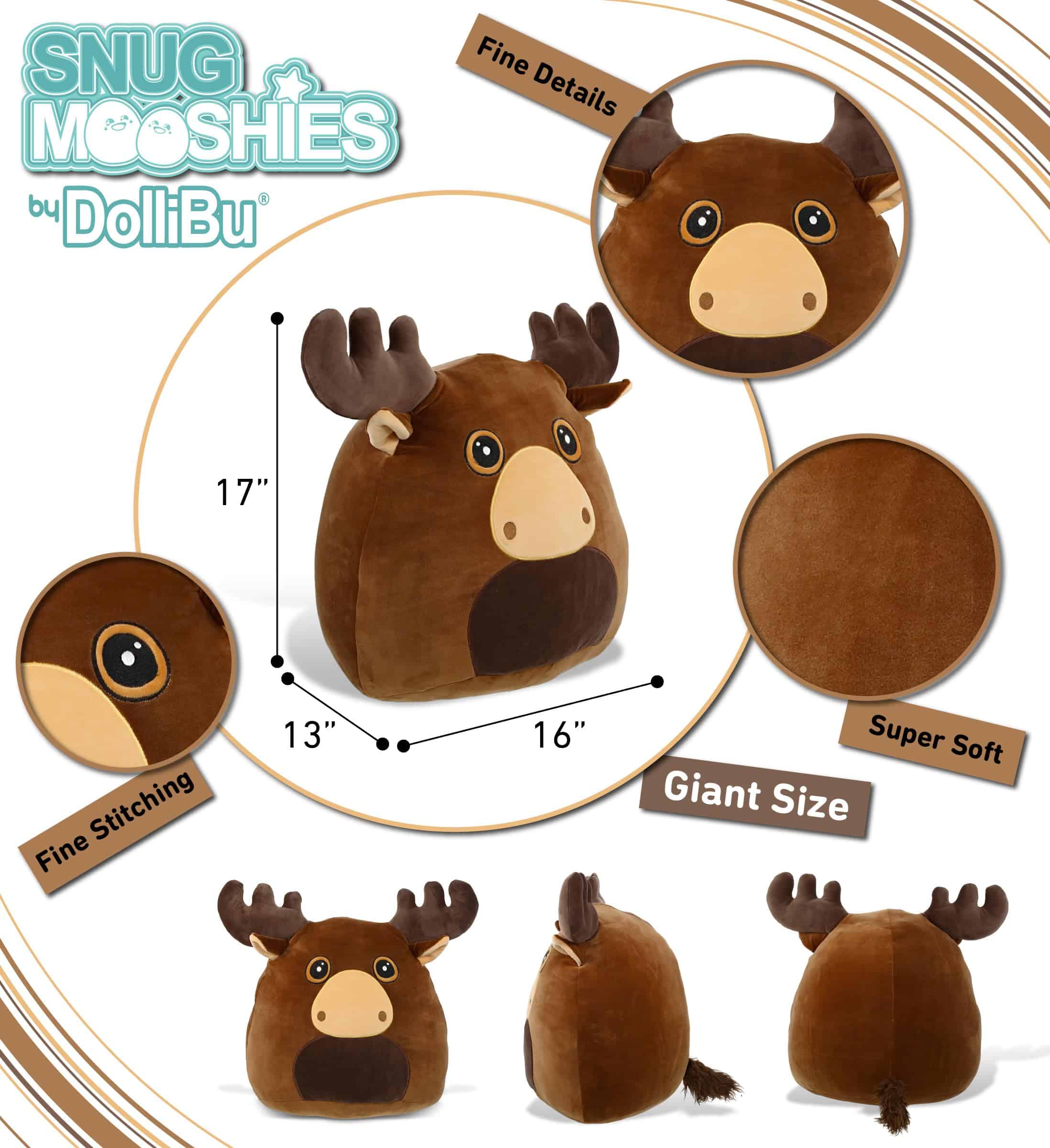 DolliBu Snug Mooshies Moose Animal de Peluche – Grande y