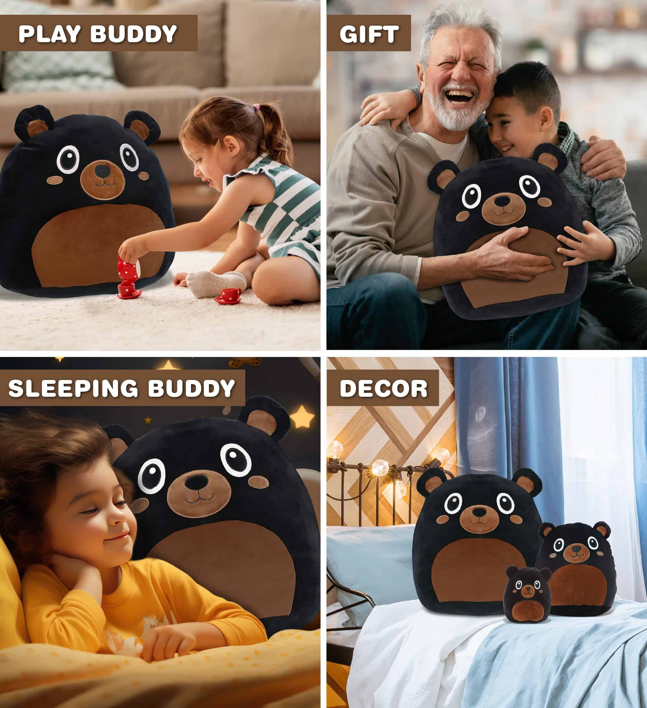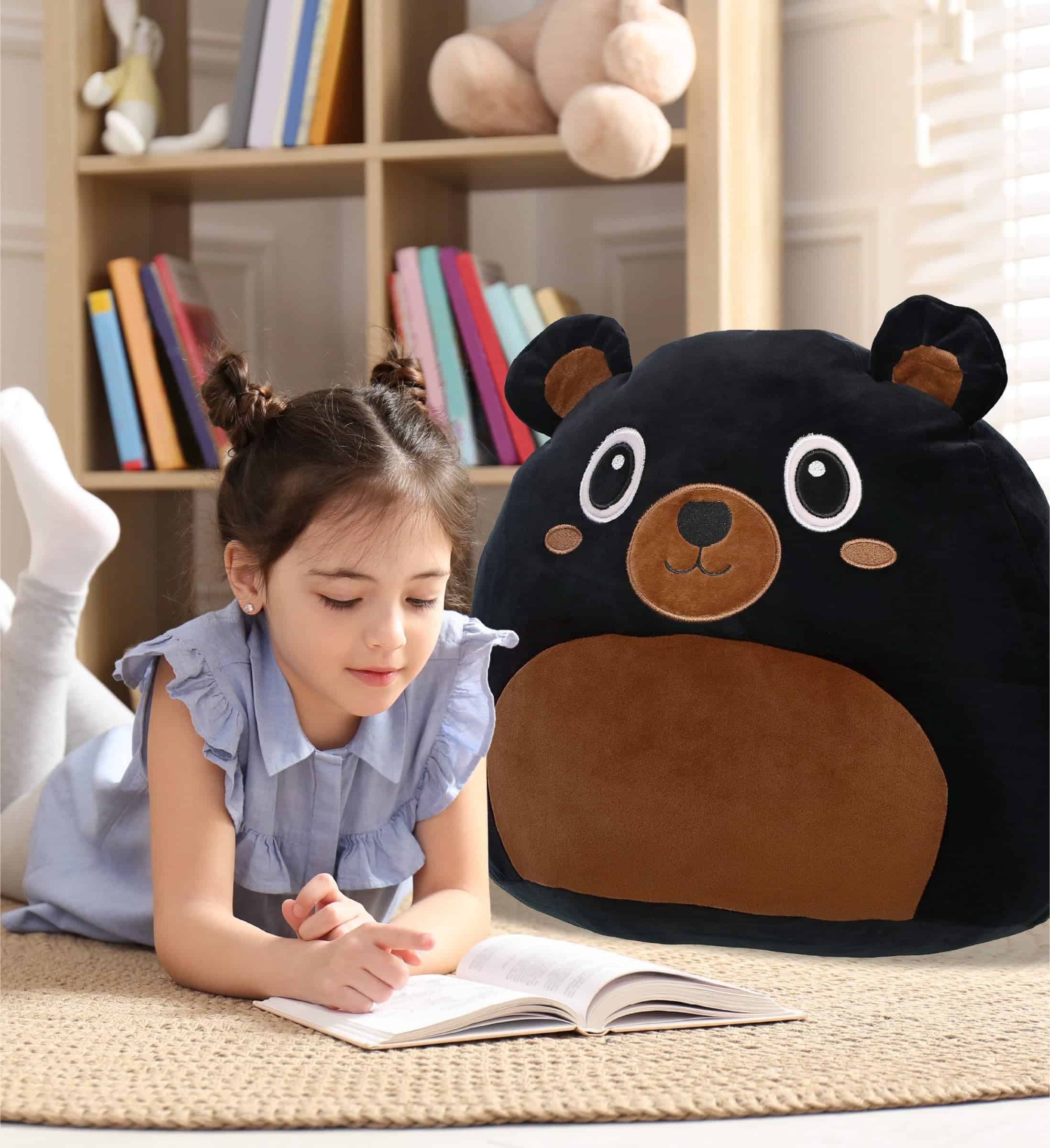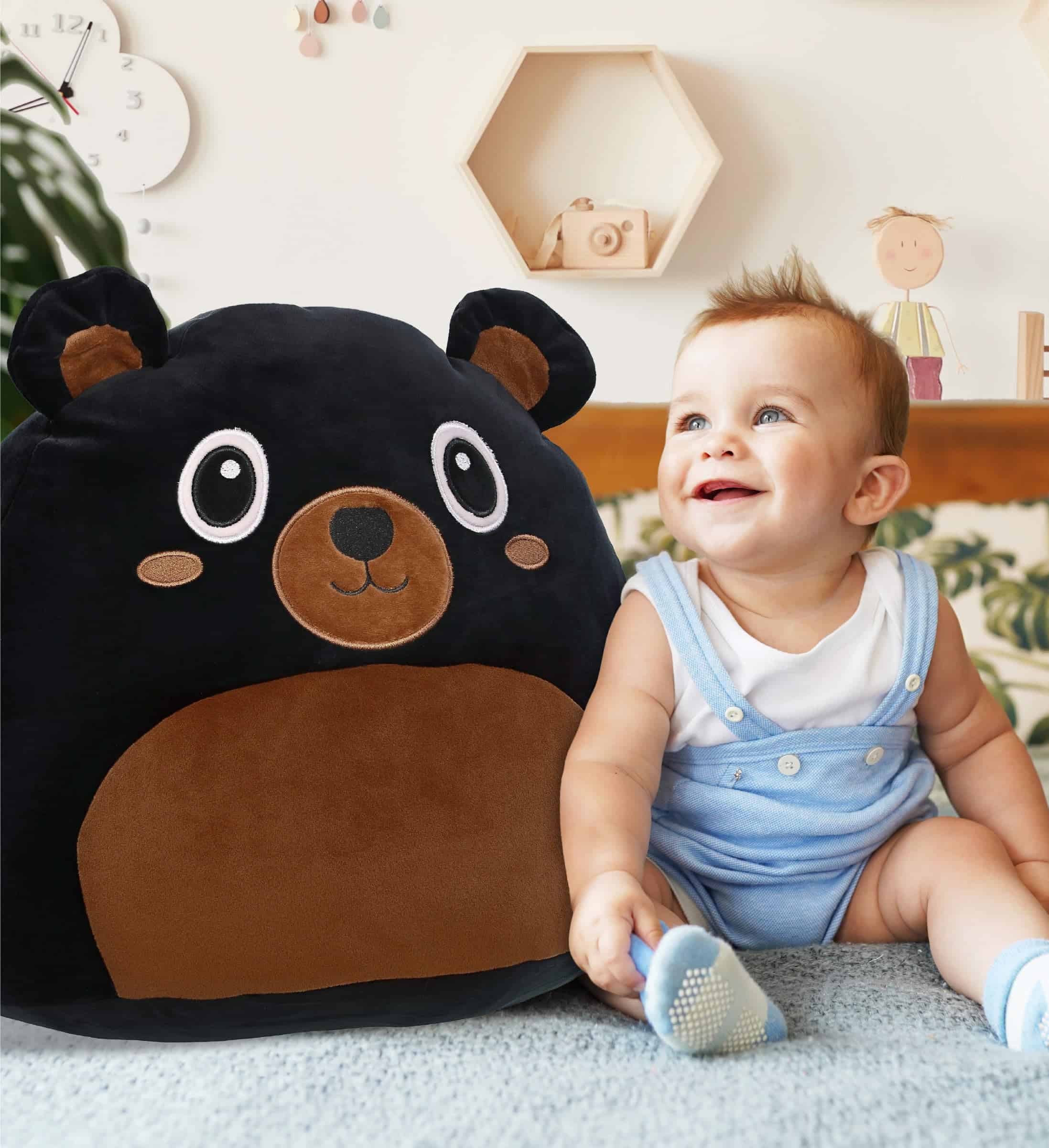 5. USO IDEAL PARA EL PELUCHE SÚPER SUAVE – Los amantes de los peluches animales estarán encantados de agregar este lindo peluche de niñas y niños a su colección de peluches esponjosos. Diviértete apretando el peluche de niños. Un gran compañero para cuentos antes de dormir. Envía los juguetes de niños de peluche de Oso Negro como regalo, perfecto para todas las ocasiones. La blandura de estos peluches súper suaves los convierte en excelentes muñecas para niños que necesitan comodidad adicional.