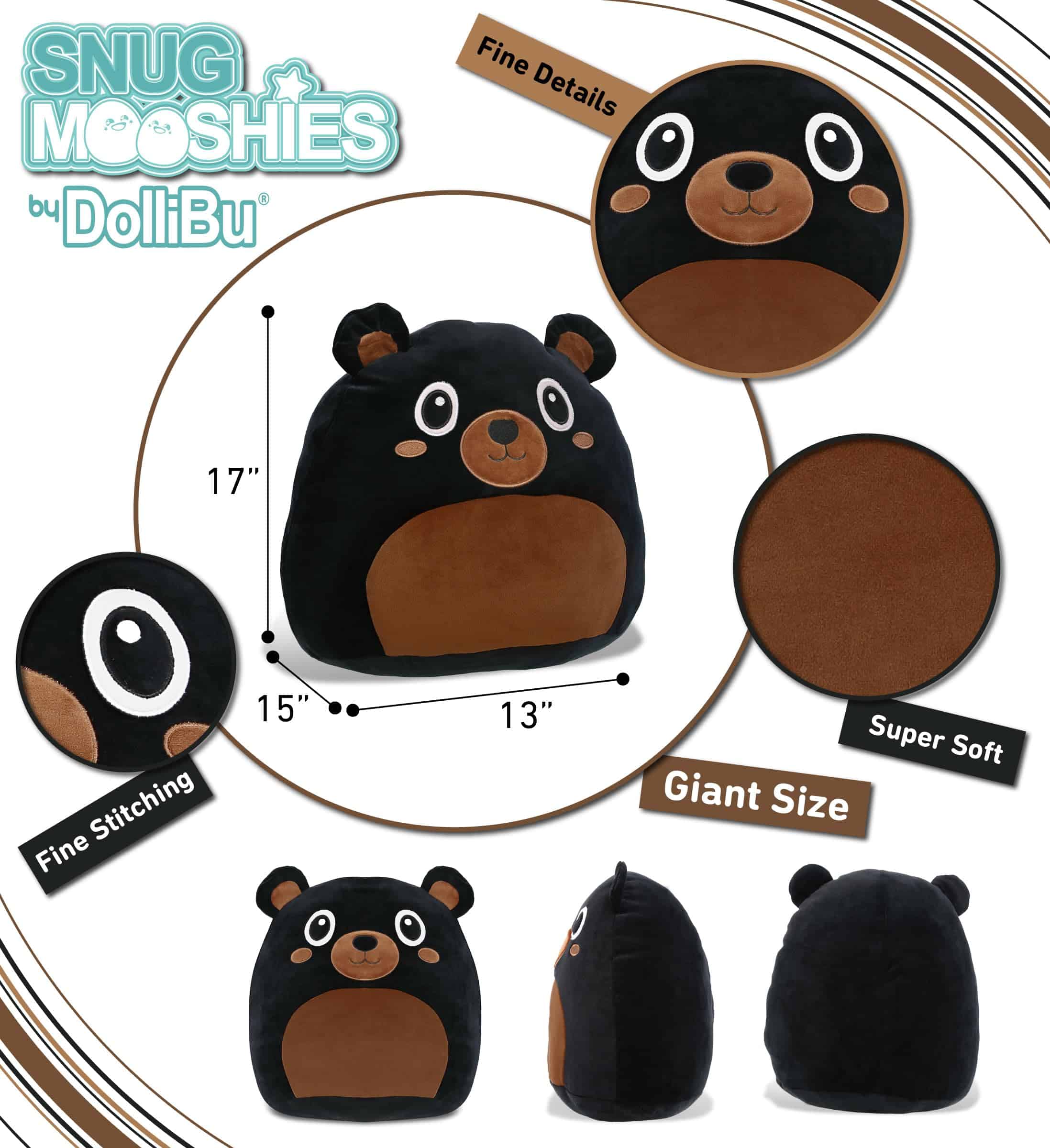 DolliBu Snug Mooshies Oso Negro Peluche – Grandes y Mimosos