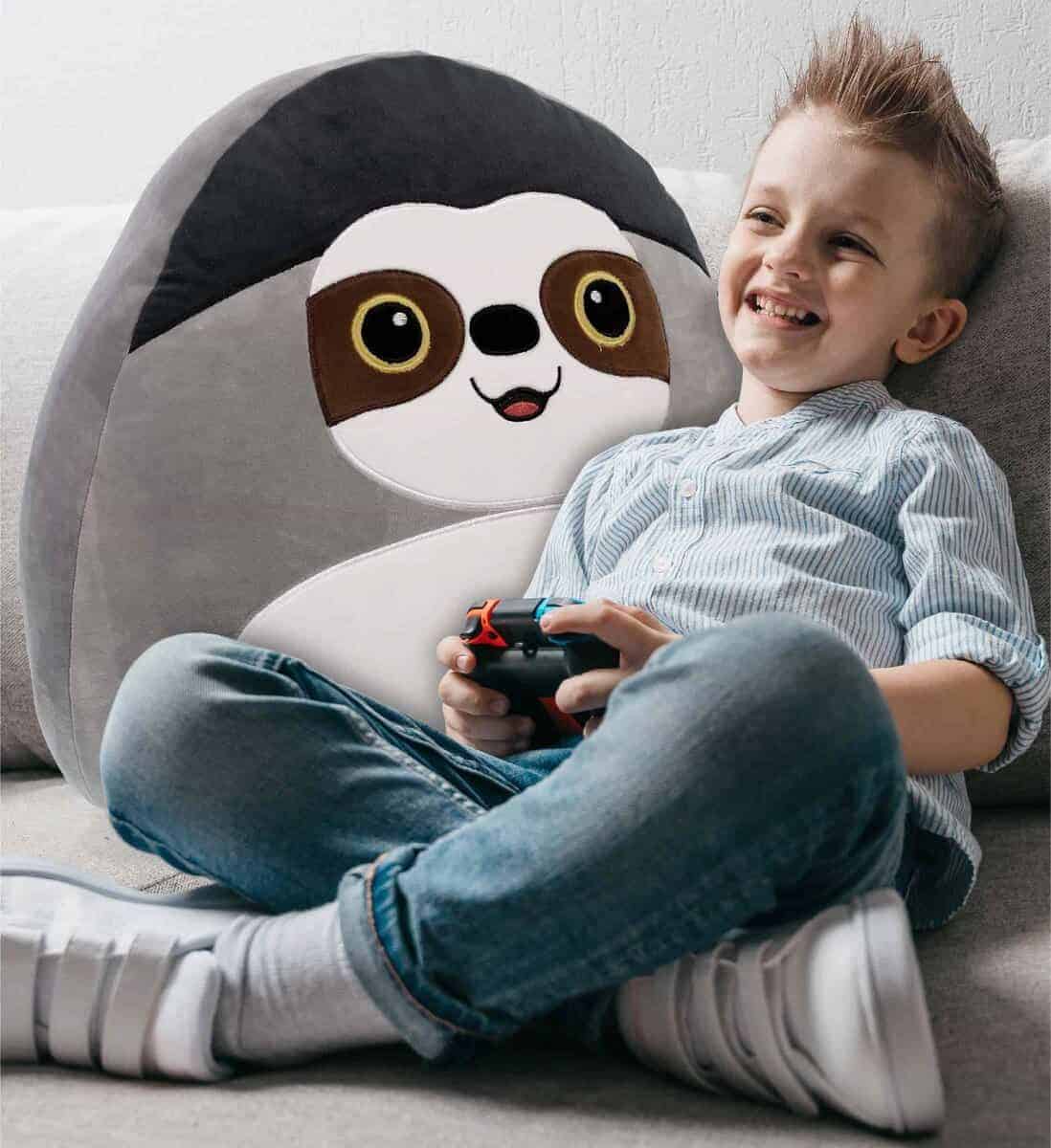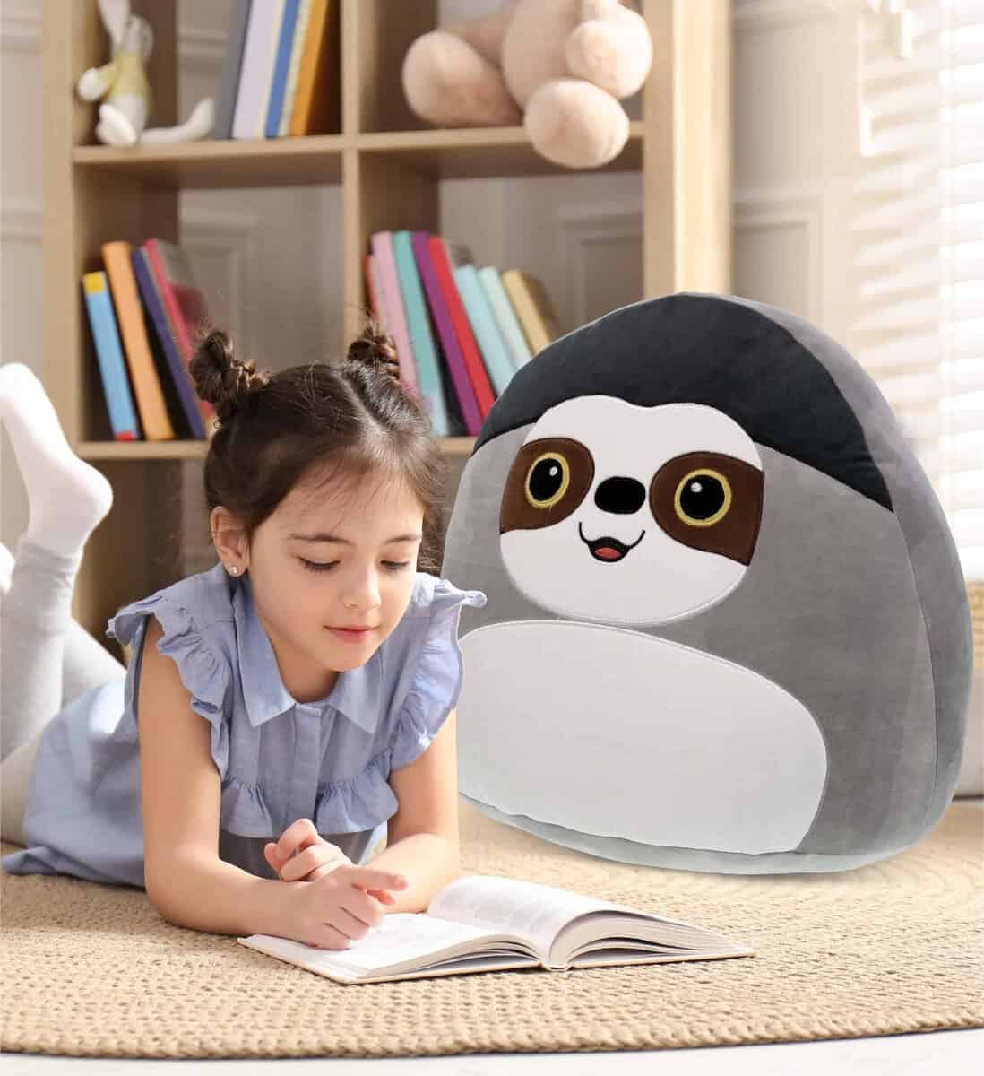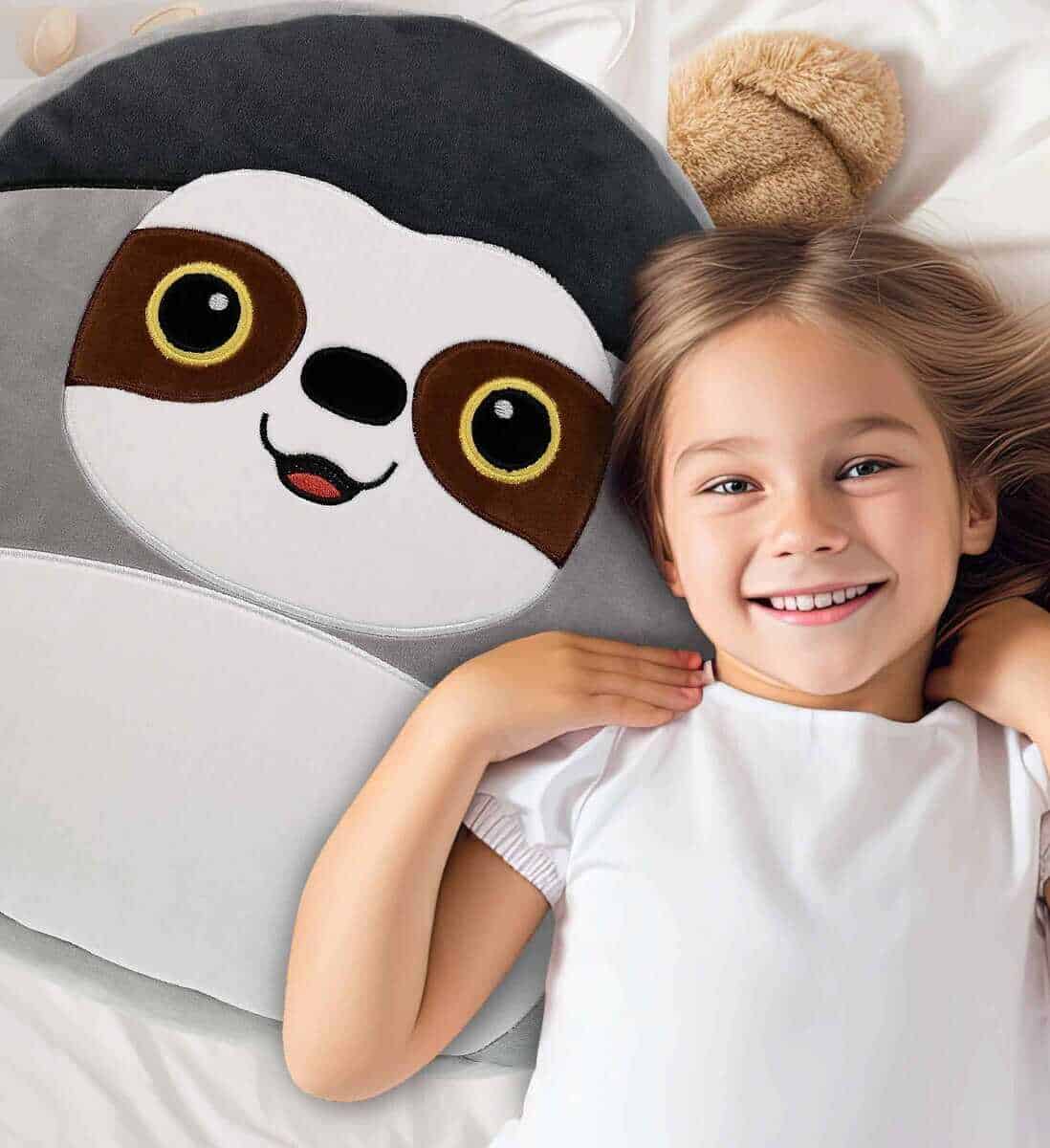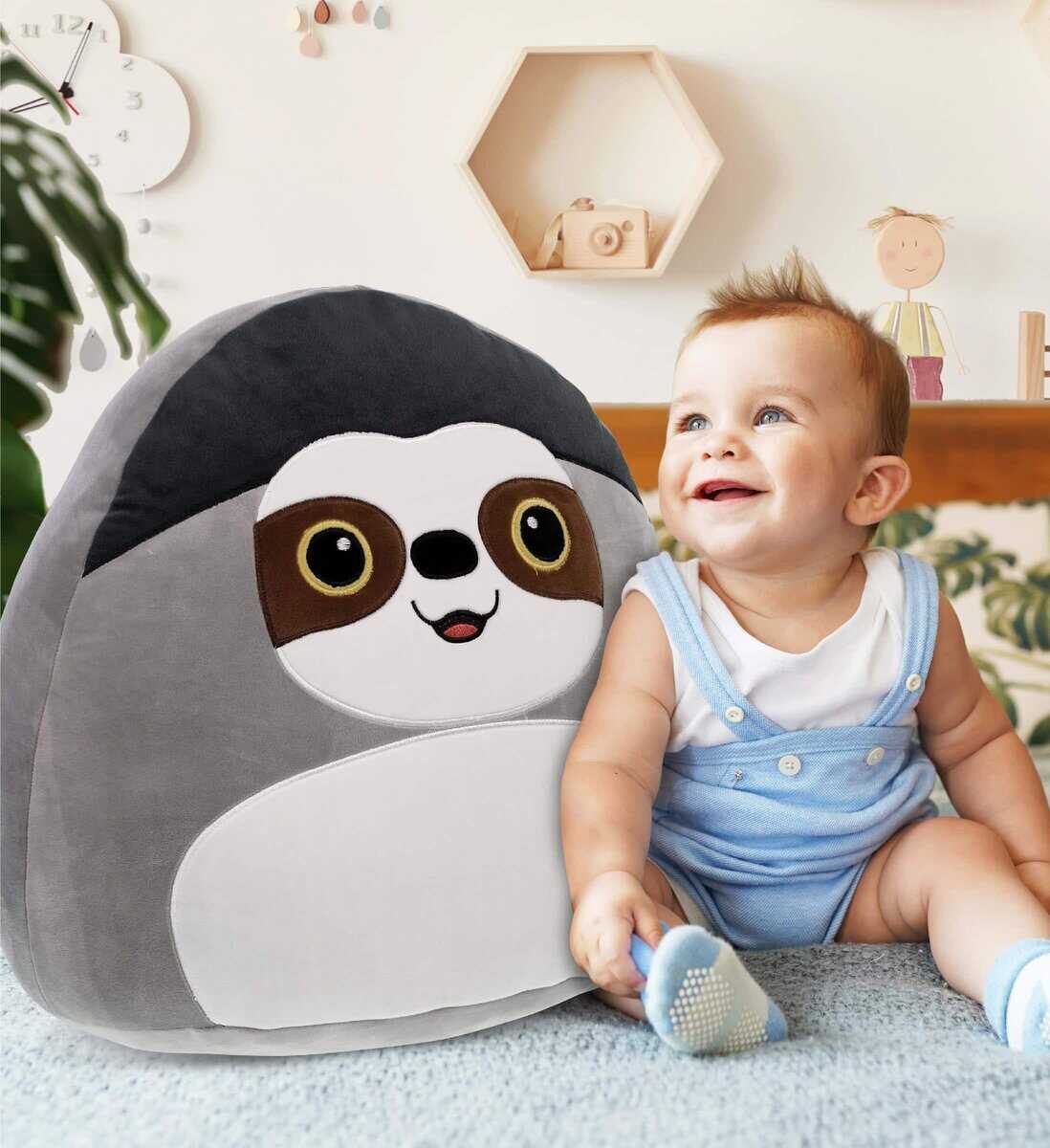 El peluche de calidad premium está hecho con poliéster 100% duradero y súper suave que puede resistir las aventuras y travesuras de la infancia. Es el compañero perfecto para aquellos que buscan un peluche suave y almohadas acogedoras. El sloth de Snug Mooshies es un peluche abrazable ideal para todas las edades, ya sea como un peluche gigante, una almohada de peluche reconfortante o simplemente un compañero de peluche para adultos que necesitan un poco de consuelo.