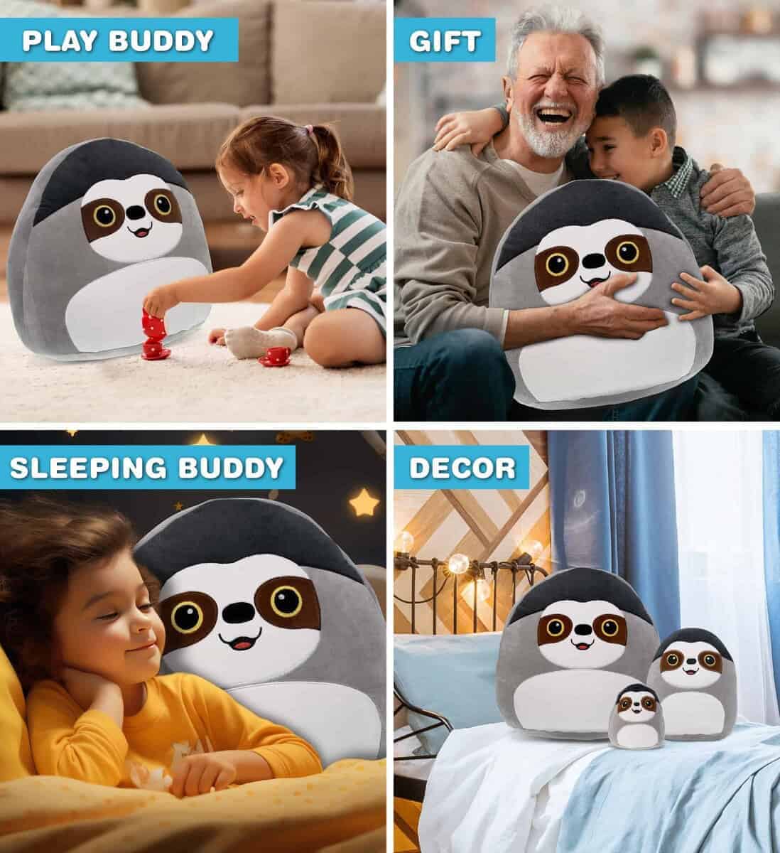 El juguete de peluche Sloth es ideal para niños y adultos que aman los animales de peluche abrazables. Es perfecto para acurrucarse y es el regalo ideal para aquellos que necesitan un compañero de peluche para dormir o para brindar comodidad adicional en momentos difíciles. El peluche super suave y ligero es excelente para personas de todas las edades.