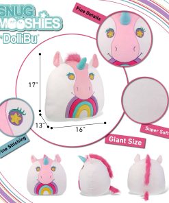 3. INCLUIDO CON LA COMPRA DE LOS ANIMALES DE PELUCHE ES MÁGICO Y ESPECIAL – Incluye 1 Peluche Grande DolliBu Snug Mooshies Unicornio Súper Suave y Esponjoso. El peluche blanco cuenta con ojos bordados con una estrella amarilla. Ya sea que estés buscando un peluche para niños o un peluche abrazable para adultos, este juguete de peluche súper suave de unicornio es el juguete perfecto y suave. Este gigante Unicornio Snug Mooshies mide 16Lx13Wx17H pulgadas.
