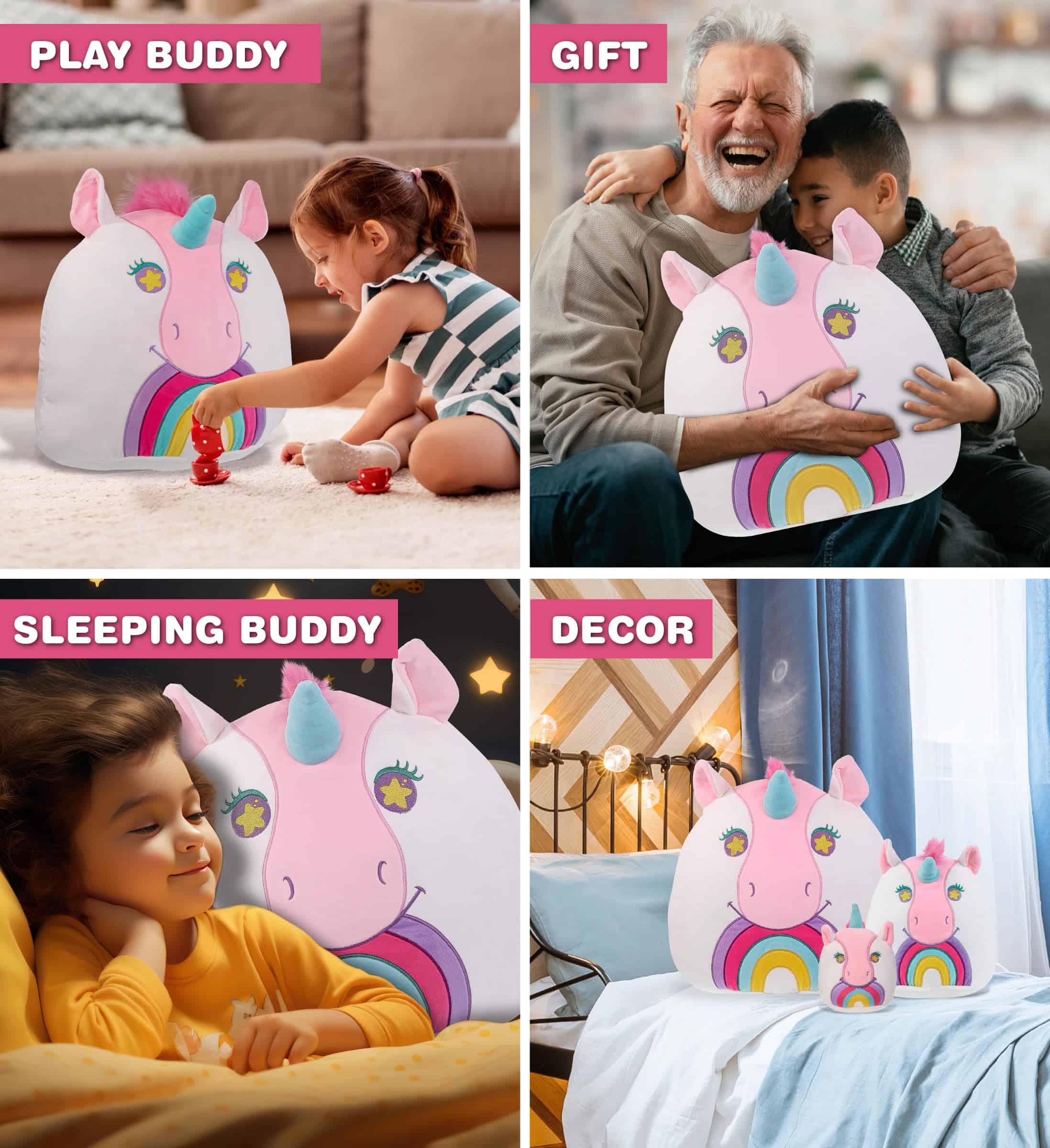 5. USO IDEAL PARA EL PELUCHE SÚPER SUAVE – Los amantes de los peluches de animales estarán encantados de agregar este lindo peluche para niñas y niños a su colección de peluches mimosos. Diviértete apretando el peluche para niños. Un gran compañero para cuentos antes de dormir. Envía los juguetes de niño de peluche de unicornio como regalo, perfecto para todas las ocasiones. La suavidad de estos peluches súper suaves los convierte en excelentes muñecos para niños que necesitan un poco más de comodidad.