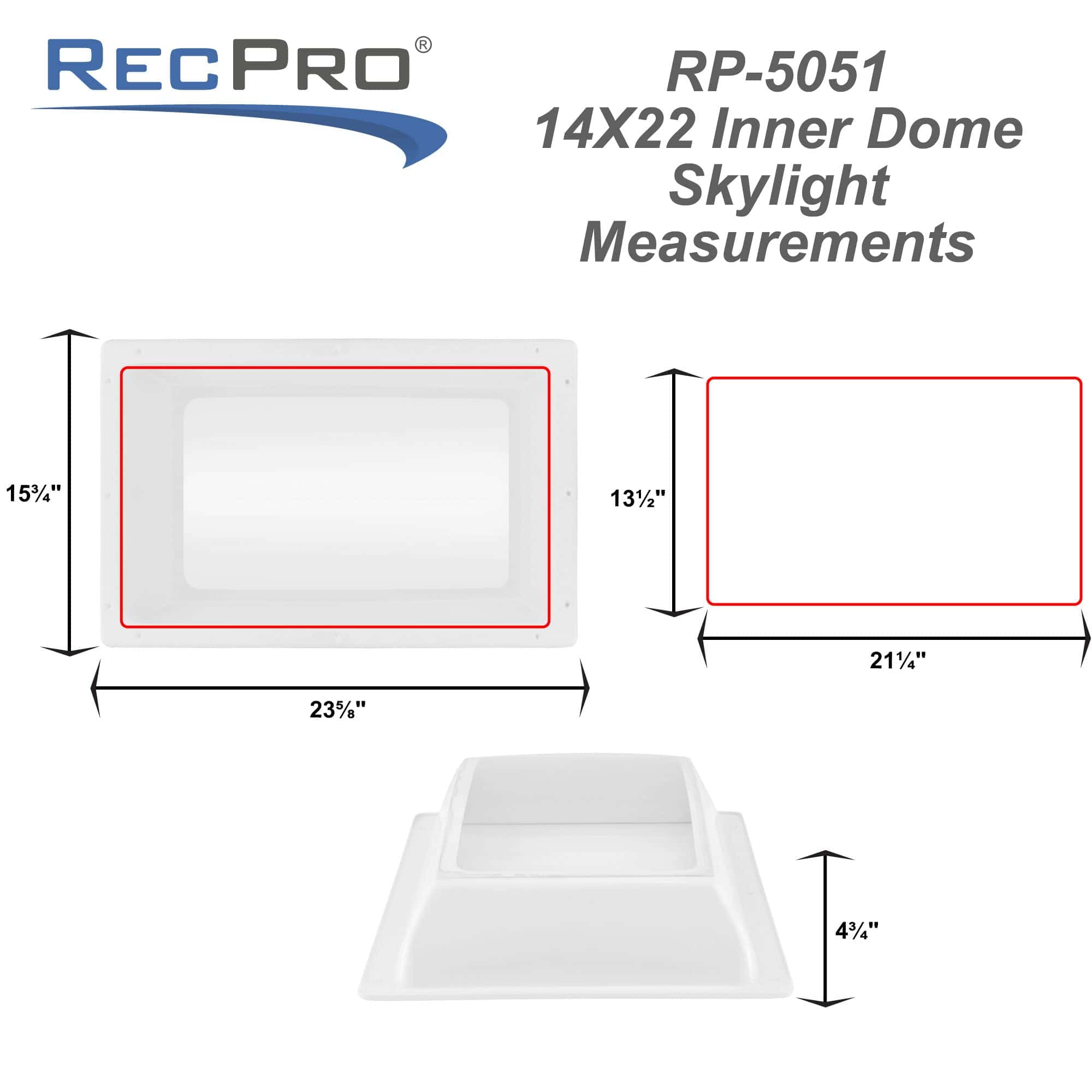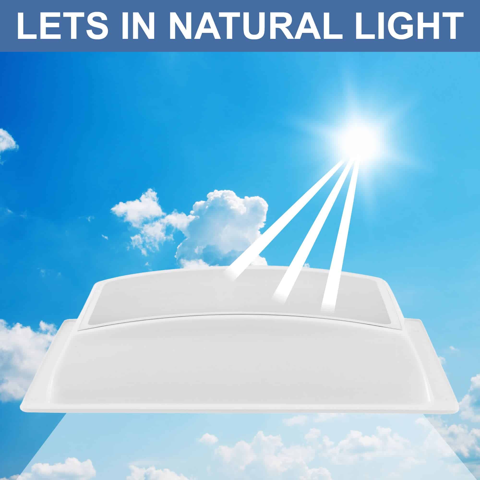 Este domo interior de claraboya RecPro RV es la solución perfecta para dejar entrar la luz natural en su RV o camper. Con su diseño blanco y ventana transparente, este domo interior no solo permite que la luz brille a través, sino que también ayuda a que su espacio se sienta más acogedor y amplio.