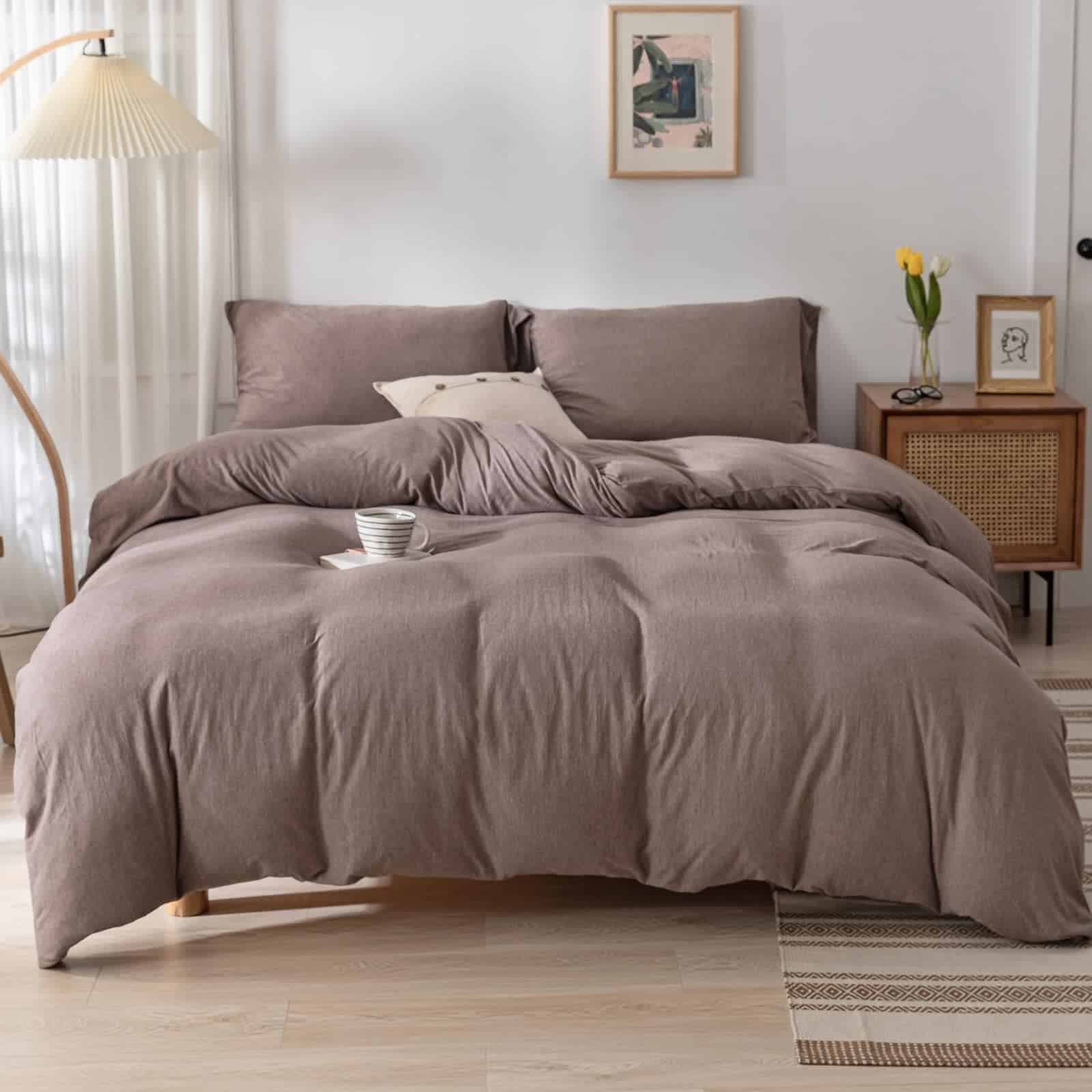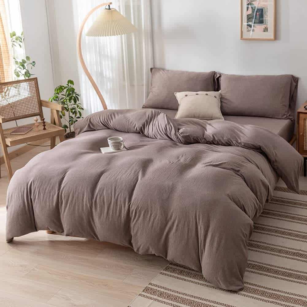 1. Material Extra Suave: Este juego de funda nórdica está hecho de tejido de punto de algodón 100%, tan cómodo como una camiseta favorita, super suave, ligero, resistente a la decoloración, hipoalergénico y transpirable, sensación de mano extra suave que se vuelve aún más suave después de los lavados. 2. Funda Nórdica Sólida: El juego de funda nórdica de punto presenta diseños de color sólido que se integran sin esfuerzo con varios estilos de decoración de dormitorios, agregando un toque de simplicidad y elegancia al ambiente de tu dormitorio. La funda nórdica queen café encaja perfectamente en cualquier espacio. 3. Juego de Funda Nórdica Queen: El juego de funda nórdica de tamaño queen de 3 piezas incluye 1 funda nórdica tamaño queen (90″ x 90″) y 2 fundas de almohada (20″ x 26″). Por favor, consulta la guía de tallas cuidadosamente y elige la que mejor se adapte a ti. (NOTA: EL EDREDÓN Y LAS ALMOHADAS NO ESTÁN INCLUIDOS). 4. Cierre de Cremallera Oculto: El juego de funda nórdica tiene un cierre de cremallera oculto que permite insertar fácilmente tu edredón en la funda y mantenerlo seguro sin moverse ni amontonarse. Además, las 4 correas en las esquinas dentro de la funda nórdica mantienen el edredón en su lugar. 5. Cuidado Fácil: Nuestra funda nórdica se puede limpiar fácilmente, secar a baja temperatura. ¡NO BLANQUEAR, PLANCHAR ni LIMPIAR EN SECO! Por favor, compra con confianza, porque no importa qué dificultades surjan, ¡te tenemos cubierto.