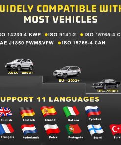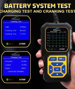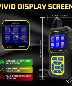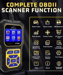 El escáner OBD2 DonosHome AT500 es una herramienta de diagnóstico actualizada con nuevas funciones. A diferencia de otras herramientas de diagnóstico de lectura de códigos OBD2, hemos actualizado este AT500 con las nuevas funciones, agregando la Función de Voltímetro e Indicador de Nivel de Batería, y Prueba del Sistema de Arranque, Analizar el estado del Sistema de Arranque, Mostrar el Voltaje del Arranque y el Tiempo del Arranque, Graficar la forma de onda de la Prueba del Sistema de Arranque y Carga, Analizar el estado del Sistema de Carga, Mostrar la ondulación, Voltaje sin carga y con carga, Dibujar la forma de onda de la prueba de ondulación. El escáner OBD2 AT500 es compatible con 9+ protocolos y es compatible con todos los coches desde 1996, compatible con OBD II y CAN, tanto en los Estados Unidos como en Europa y Asia. Cuenta con 11 idiomas en el sistema (EN, FR, IT, ES, DE, PT, NL, PO.), el manual del usuario se encuentra en 8 idiomas, lo cual es muy conveniente para los clientes. El escáner AT500 determina fácilmente la causa de la Luz de Revisión del Motor (MIL), recupera códigos genéricos (P0, P2, P3 y U0) y específicos del fabricante (P1, P3 y U1), muestra definiciones de códigos en la pantalla de la unidad, lee los datos en vivo del PCM. El diseño Compacto y Elegante de DonosHome AT500 se caracteriza por su pantalla grande en color en un estuche horizontal pequeño y resistente, potente y puede detectar muchos problemas de los coches. El diseño compacto cuenta con una pantalla LCD a color de 3.2 pulgadas (320×240 píxeles) y un tiempo de carga de datos relativamente rápido, la pantalla tiene iconos para las funciones principales y una interfaz de 7 teclas grandes y fácil de seguir con goma suave, terminal portátil muy cómodo de sostener, cable aislante flexible de 95 cm de largo y grueso con conector OBD2 de 16 pines. Nuestro lector de códigos OBD2 no solo muestra datos en vivo, como la velocidad del motor, la temperatura del refrigerante y otros elementos, sino que también puede realizar una prueba exhaustiva de preparación previa a la inspección; muestra resultados en forma de 3 luces para fallas: rojo (falla permanente), amarillo (falla temporal) o verde (sin fallas), es capaz de leer y borrar la información de revisión del motor del sistema OBDII, pero no funciona con sistemas no OBDII como ABS/Airbag/Luz de Servicio del Aceite, etc.