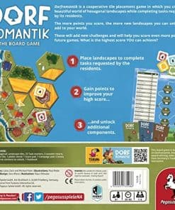 Ríos burbujeantes, bosques susurrantes, campos de trigo ondeando en el viento, ¡y aquí y allá un lindo pueblito que es Dorfromantik! La comunidad de jugadores ha estado deleitándose con el videojuego del pequeño estudio indie Toukana Interactive desde su lanzamiento en Acceso Temprano en marzo de 2021. Incluso ha ganado varios premios de renombre en los videojuegos. Ahora Michael Palm y Lukas Zach han transformado el popular juego de rompecabezas de construcción de paisajes en un juego de mesa familiar para todas las edades con Dorfromantik – El Juego de Mesa. En Dorfromantik – El Juego de Mesa, hasta seis jugadores utilizan fichas hexagonales para formar un hermoso paisaje juntos e intentan cumplir los deseos de su población. Al mismo tiempo, deben colocar la vía de tren más larga posible y el río más largo posible, y tener en cuenta las banderas, que proporcionan puntos en las áreas completadas. Cuanto mejor logren los jugadores diseñar su paisaje, más puntos podrán lograr al final de una partida. Durante la campaña rejugable, se pueden desbloquear nuevas fichas con los puntos obtenidos en juegos anteriores. Estas fichas están inicialmente ocultas en cajas pequeñas y cerradas. Proporcionan a los jugadores nuevas tareas adicionales y permiten seguir aumentando la puntuación en este juego cooperativo.