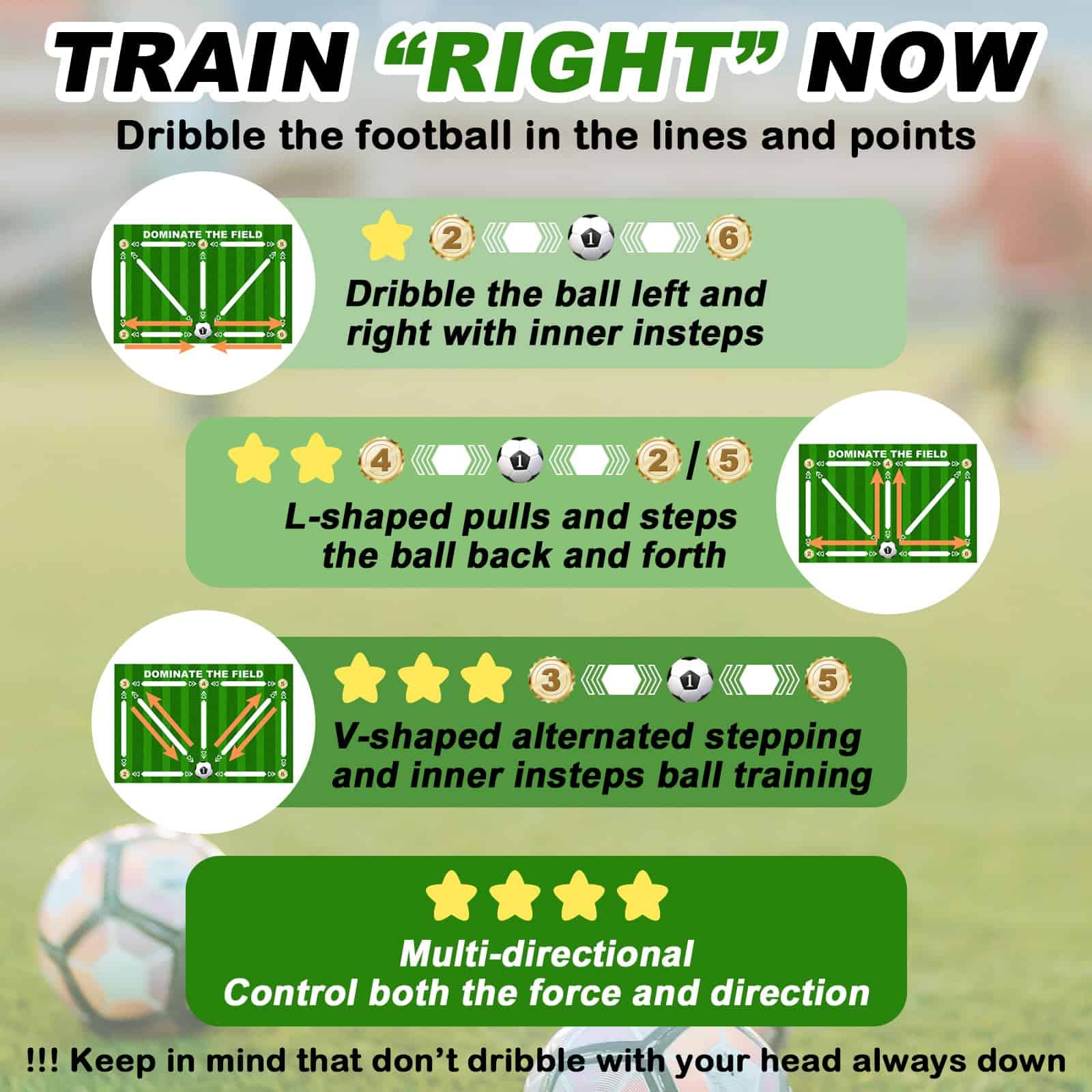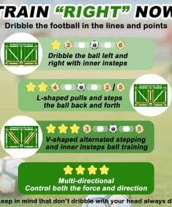1. ASISTENTE PERFECTO PARA ENTRENAMIENTO DE FÚTBOL: Con el tapete de entrenamiento de fútbol, podrás mejorar significativamente tus habilidades de fútbol. Este tapete de entrenamiento de fútbol está diseñado para mejorar el control del balón, la agilidad y la coordinación corporal. Al entrenar a lo largo de las líneas y puntos cuidadosamente diseñados, podrás dominar fácilmente la habilidad de controlar la curva. Ya seas un principiante o un jugador experimentado, te beneficiarás enormemente de ello.