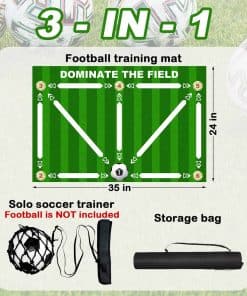 3. COMODIDAD TOTAL: Ya sea en casa, en el parque o en el patio de recreo, puedes practicar en cualquier momento y lugar. Cada juego de entrenadores de fútbol incluye un tapete de entrenamiento de fútbol, una bolsa de almacenamiento y una red de retorno. No importa si hace sol o llueve, adentro o afuera, nada puede detener tu amor por el fútbol. Incluso en un espacio limitado, puedes aprovechar al máximo tu tiempo para un entrenamiento efectivo.