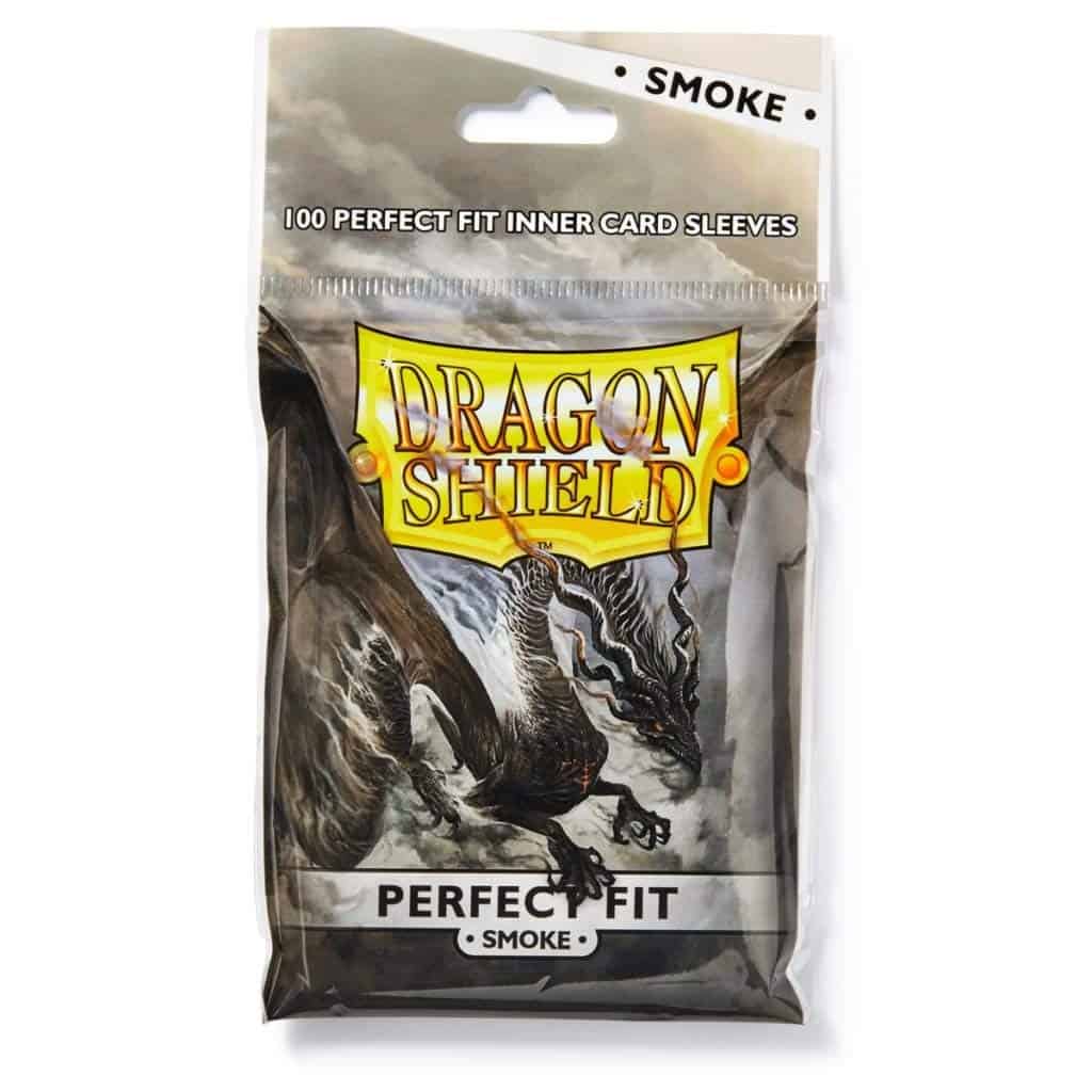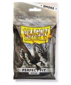 Dragon Shield Smoke Perfect Fit. Fundas con frente transparente y reverso en humo. La coloración semi-transparente oculta los detalles en la parte posterior de tu carta sin perder la legibilidad completa. Añade fundas Perfect Fit para una protección máxima de las cartas. Las fundas Perfect Fit se ajustan aún más a las cartas e van dentro de todas las Dragon Shields de tamaño estándar. Para cartas de hasta 63 x 88 mm. Fundas de polipropileno sin PVC, sin ácido. Seguras para archivos. 100 fundas por paquete.