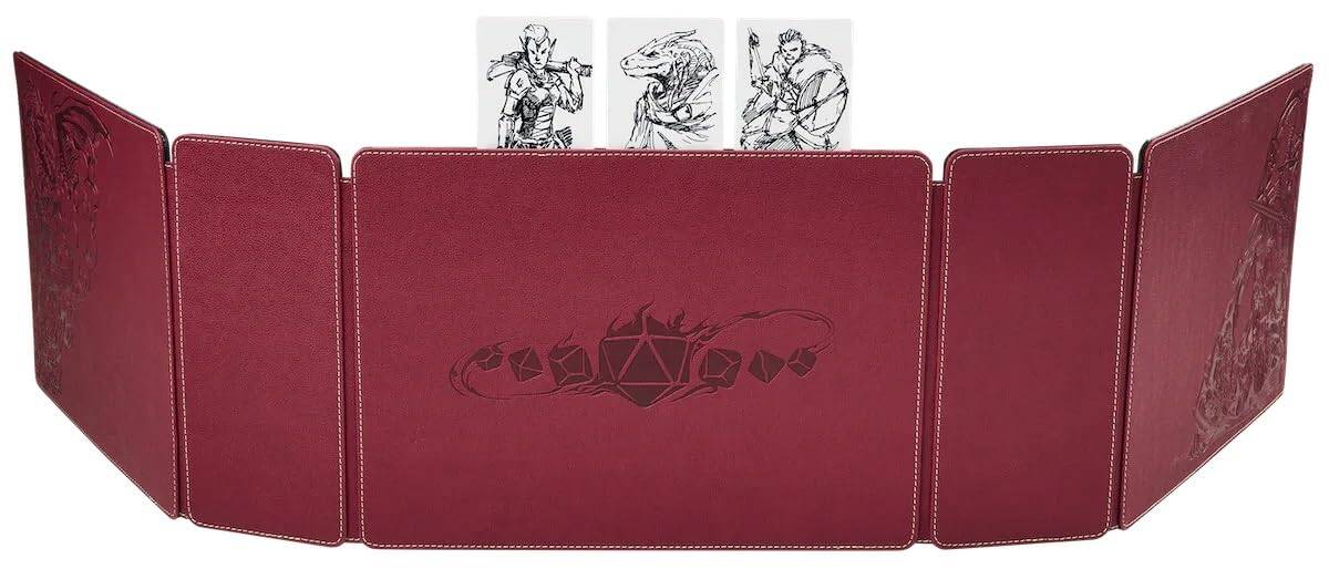 Producto altamente personalizable y único en su clase. Cierre magnético resistente que asegura el transporte y almacenamiento seguro de los contenidos. Rastreador de iniciativas integrado a lo largo de la parte superior de la pantalla del maestro de juego. Resistente cubierta de piel de dragón. Incluye 18 cartas de plástico reutilizables y marcador de pizarra blanca. Crea fácilmente cartas de jugador, monstruo y PNJ. Incluye 6 bandejas de espuma con espacio para un total de más de 40 miniaturas de varios tamaños. Diseñado para garantizar al maestro de juego una visión cómoda del área de juego, ¡incluso cuando está sentado! La pantalla del GM puede contener hojas tamaño A4 para todos los mapas esenciales del maestro de juego, listas de PNJ, cartas de monstruos, etc. Bandas elásticas detrás de la pantalla del GM para sujetar tu teléfono o bolígrafos. Las dimensiones internas de la caja son: 10 x 22.3 x 30.6cm (3-9/10 x 8-4/5 x 12 ).