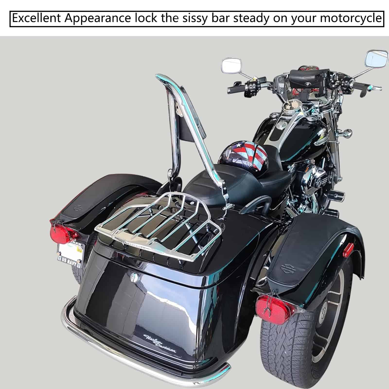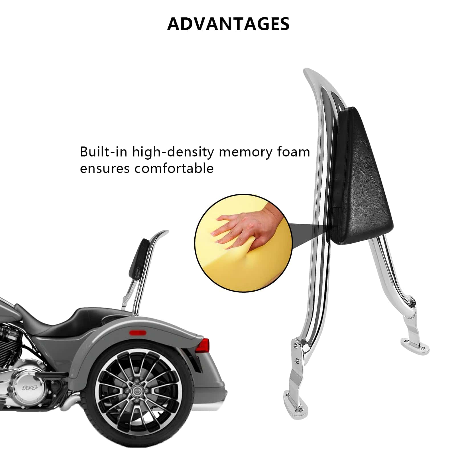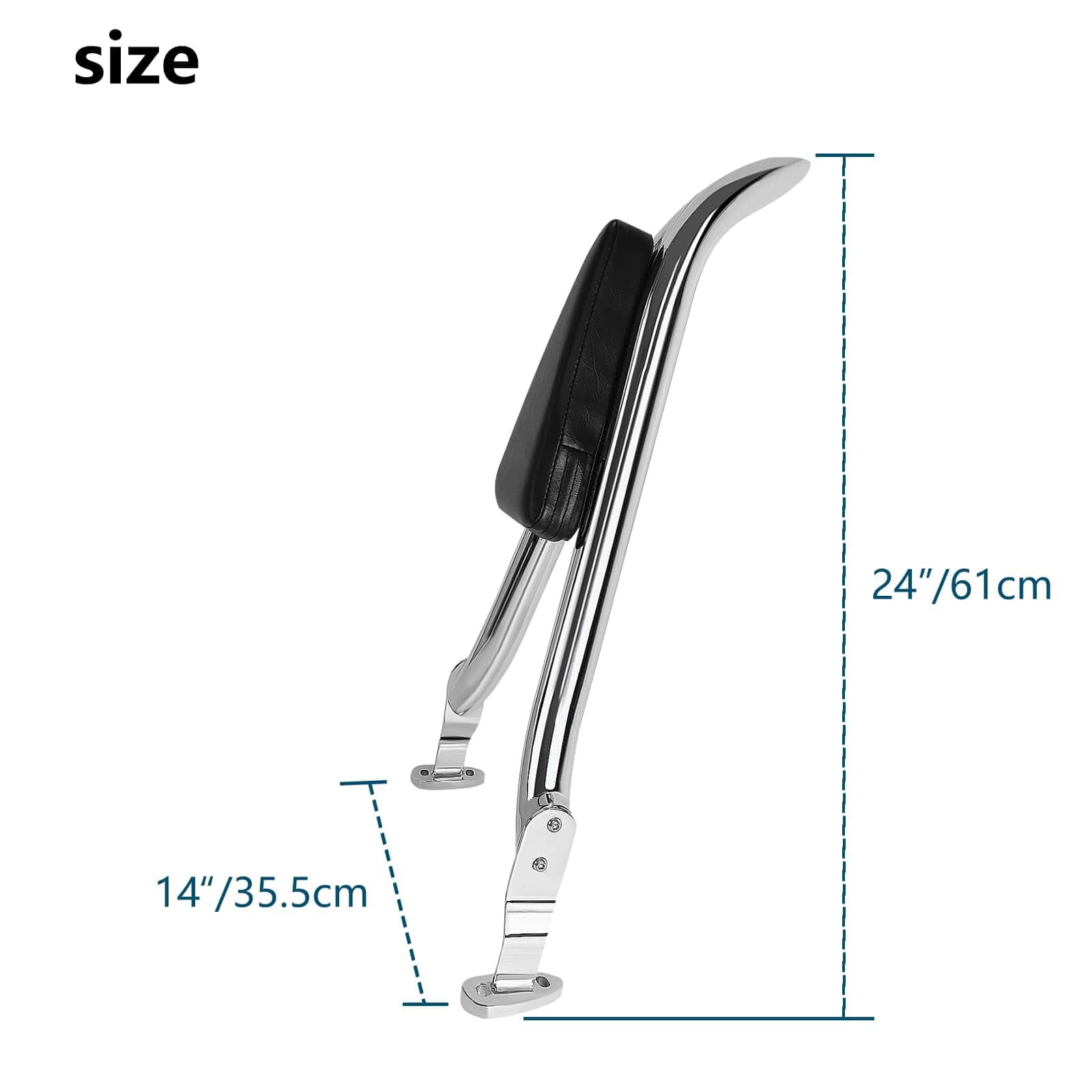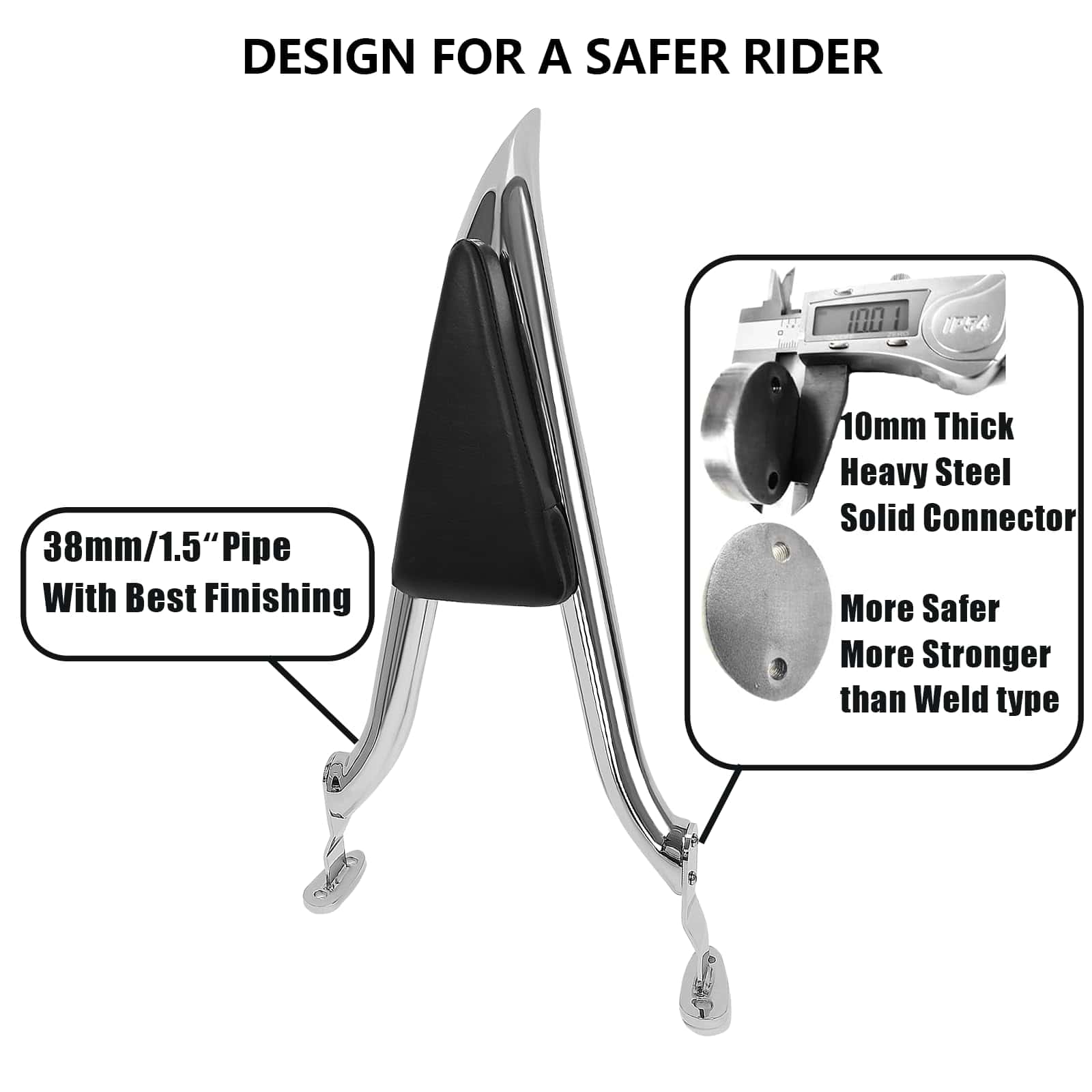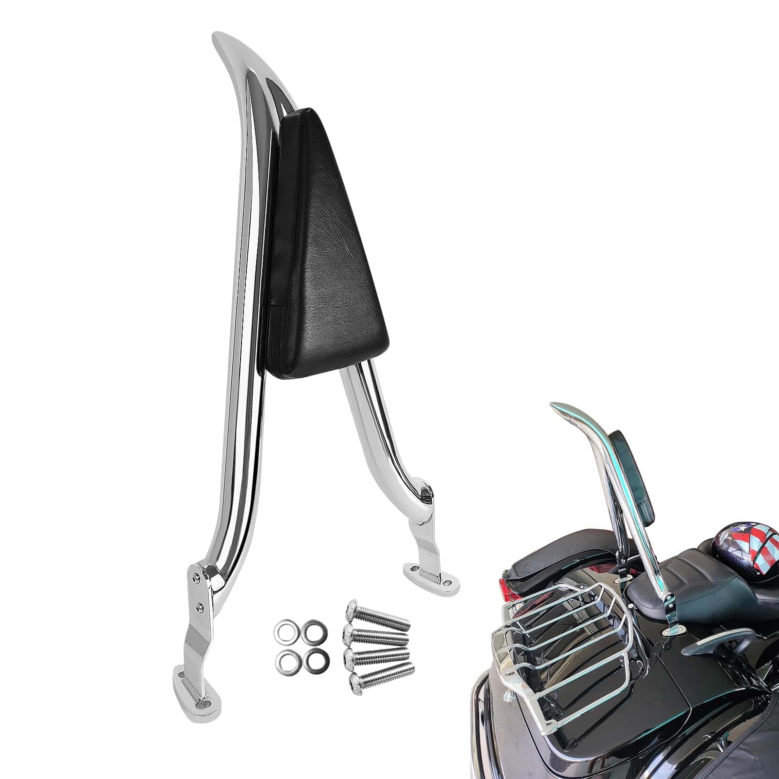 El respaldo trasero Dredoggmoto Sissybar Pad es compatible con los modelos Harley FLRT FreeWheeler & RG3 fabricados entre 2015 y 2024. Está construido con acero sólido para garantizar un viaje cómodo y seguro durante la conducción. Con tratamiento de galvanoplastia para una apariencia elegante y duradera. El diseño de pernos permite una instalación y desinstalación rápida y sencilla. El respaldo está hecho a mano con cuero PU y espuma de memoria de alta densidad para mayor comodidad. El diseño de acero fuerte y grueso garantiza la seguridad del pasajero. Incluye 1 x Respaldo Desmontable, 1 x Kit de Montaje, 1 x Almohadilla Trasera Negra.