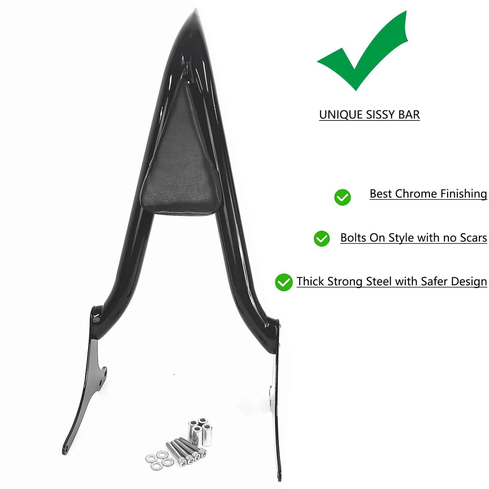 5. PAQUETE INCLUIDO- 1 x Respaldo desmontable Sissy Bar, 4 x Tornillos, 1 x Almohadilla Negra Trasera. Instrucciones incluidas. El respaldo del sissy bar tiene un diseño genial que se adapta bien a hombres o mujeres a quienes les gustan las motocicletas geniales y un aspecto personalizado detallado.