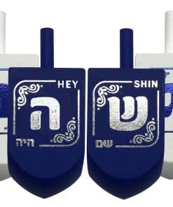 Dreidels de Hanukkah – Dreidel de Madera Azul y Blanco –