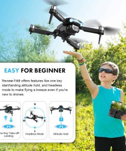 Techwonderz – Potenciado por la Tecnología, Enraizado en el Futuro. Razones por las que amarás nuestro dron recién mejorado para el 2024: 1. La cámara se ha mejorado de 720P a 1080P de Alta Definición. 2. Se incluyen dos nuevas baterías recargables mejoradas de 1200mAh a 1800mAh, lo que permite que el tiempo de vuelo prolongado sea de hasta 50mins. 3. Diseño liviano mejorado con nuevo material. El peso ahora es de 141g (cuerpo del dron + 1 batería en el interior). Lo que ha mejorado el poder de crucero y además No se necesita Identificación Remota de la FAA ya que ahora está bajo 249g. 4. Se incluyen más accesorios de dron en el paquete, es decir, Pista de Aterrizaje x 1, Hélices de Repuesto x 16, Batería de Control Remoto x 3 Por qué la gente ama Techwonderz Como uno de nuestros importantes clientes, tu voz será escuchada y tus necesidades serán satisfechas. Todo esto será valorado y reflejado en nuestra nueva versión de productos, y proporcionará a ti y a otros posibles clientes una mejor experiencia. Características del Producto: – Cámara de Alta Definición – 50 Mins de Tiempo de Vuelo – Evitación de Obstáculos – Despegue/Aterrizaje con un Solo Botón – Ajuste Automático de la Velocidad de Seguimiento – Modo Sin Cabeza – Sujeción de Altitud – Fotografía por Gestos – Vuelo de Trayectoria – Giro de 360 Grados – Plegable y Portátil Qué hay en la caja Techwonderz Drone F169 Pro 1, Control Remoto 1, Hélices de Repuesto 16, Batería Inteligente del Dron 1800mAh 2, Caja de Color x 1, Bolso Portátil 1, Cable de Carga 1, Tornillos Específicos de las Hélices de Repuesto 4, Cámara de Alta Definición 1080P, Destornillador de las Hélices de Repuesto 1, Manual x 2, Pista de Aterrizaje x 1