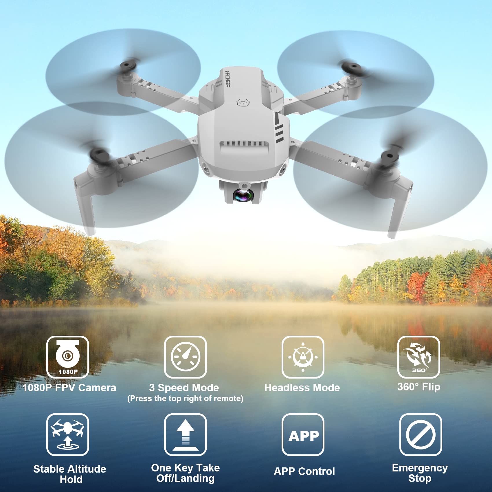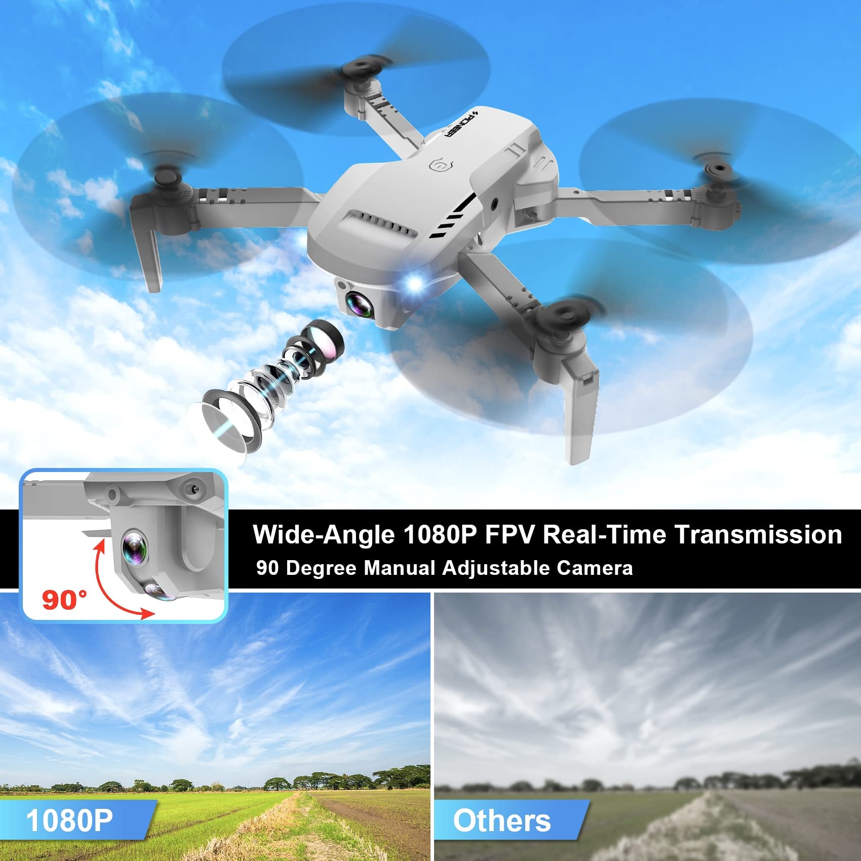 Drone RADCLO con Cámara – 1080P HD FPV Mini Drone Plegable