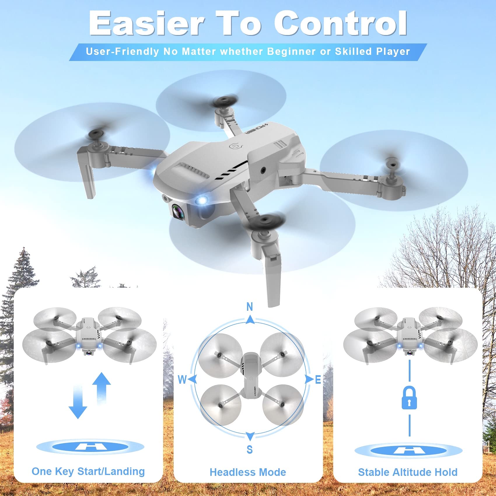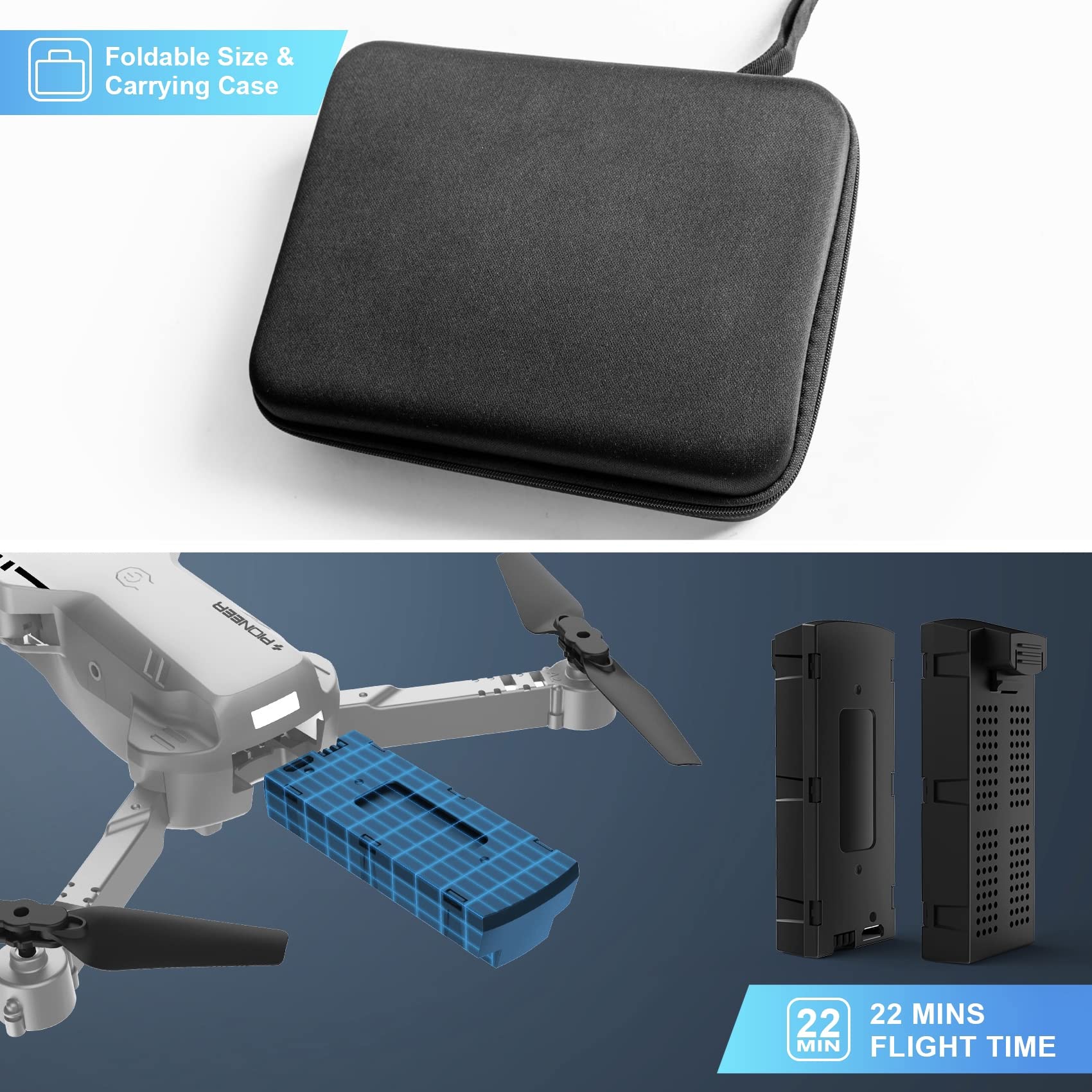RADCLO Drone with Camera – 1080P HD FPV Foldable Mini Drone with Carrying Case, 2 Batteries, 90 Adjustable Lens, One Key Take Off/Land, Altitude Hold, 360 Flip, Gifts Toys