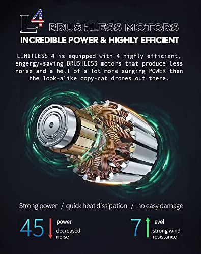 3. VUELO PROLONGADO Y POTENTES MOTORES: El drone Drone-Clone Xperts LIMITLESS 4S cuenta con una batería de 5,000mAh, ofreciendo 30 minutos de vuelo por carga. Nuestro drone GPS con cámara 4k para adultos está alimentado por potentes motores sin escobillas, disfruta de un menor ruido, una vida útil de batería prolongada y un control incomparable.
