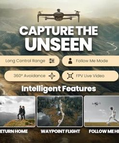 LA CAPACIDAD DE DISTANCIA DE 4,000FT (1200M) es aparentemente ILIMITADA con una distancia de transmisión de 800M. PUNTO DE INTERÉS (POI): Un modo de vuelo inteligente que utiliza sistemas avanzados de posicionamiento para colocar tu drone en una trayectoria de vuelo automatizada alrededor de un sujeto deseado, mientras rota el drone para mantener el sujeto centrado en el marco de la cámara—Función de evitación de obstáculos hacia adelante con láser. -EVITACIÓN DE OBSTÁCULOS: ¡Finalmente vuela sin preocupaciones! El evitador de obstáculos utiliza un láser para escanear la parte delantera con un escaneo en forma de abanico de 120 para detectar si hay un obstáculo EIS: Estabilización de Imagen Eléctrica y una cámara anti-vibración de 3 EJES te permiten grabar cinematografía profesional. –Con sistema de control de flujo óptico en el aire y de altitud de presión de aire.