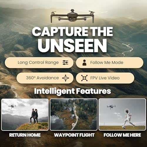 1. EVITACIÓN AVANZADA DE OBSTÁCULOS Y RANGO AMPLIADO: Nuestro drone con cámara 4K cuenta con tecnología de evitación de obstáculos de 360 – Un láser integrado escanea la trayectoria de vuelo, evitando sin esfuerzo obstáculos con un increíble rango de vuelo de 3 millas, permitiéndote explorar más lejos que nunca con nuestro drone GPS.