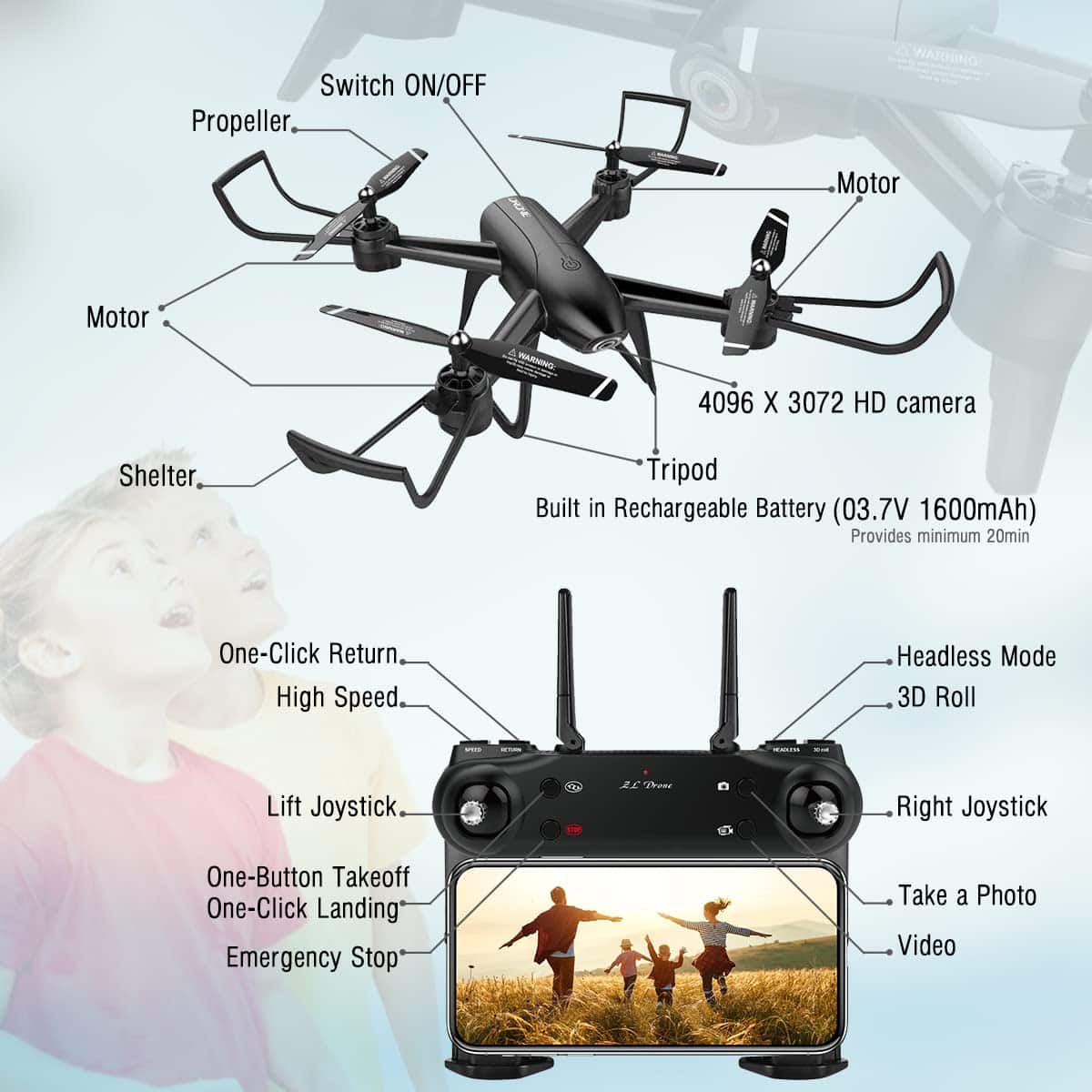 5. Más Grande, Mejor y lleno de Características – Obtén más funciones y diversión con El Dron Controlado a Distancia Shello, que es de 12.6×12.6 pulgadas para una experiencia profesional, pero ligero para una portabilidad fácil. A diferencia de los pequeños drones de tamaño de bolsillo, este dron ofrece una experiencia de vuelo más grande y mejor