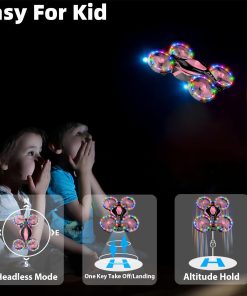 1. Múltiples colores y modos de luz LED coloridos – Los 4 protectores de hélice del mini dron están cubiertos con luces LED ultrabrillantes que cambian de color, 11 colores y modos son libres de elegir. Lo que atrae a los niños no es solo un vuelo divertido, sino también luces bonitas. El diseño de múltiples luces LED coloridas garantiza un funcionamiento con LED neon de colores ultra brillantes tanto de día como de noche, en interiores o exteriores, puede crear una atmósfera increíble.