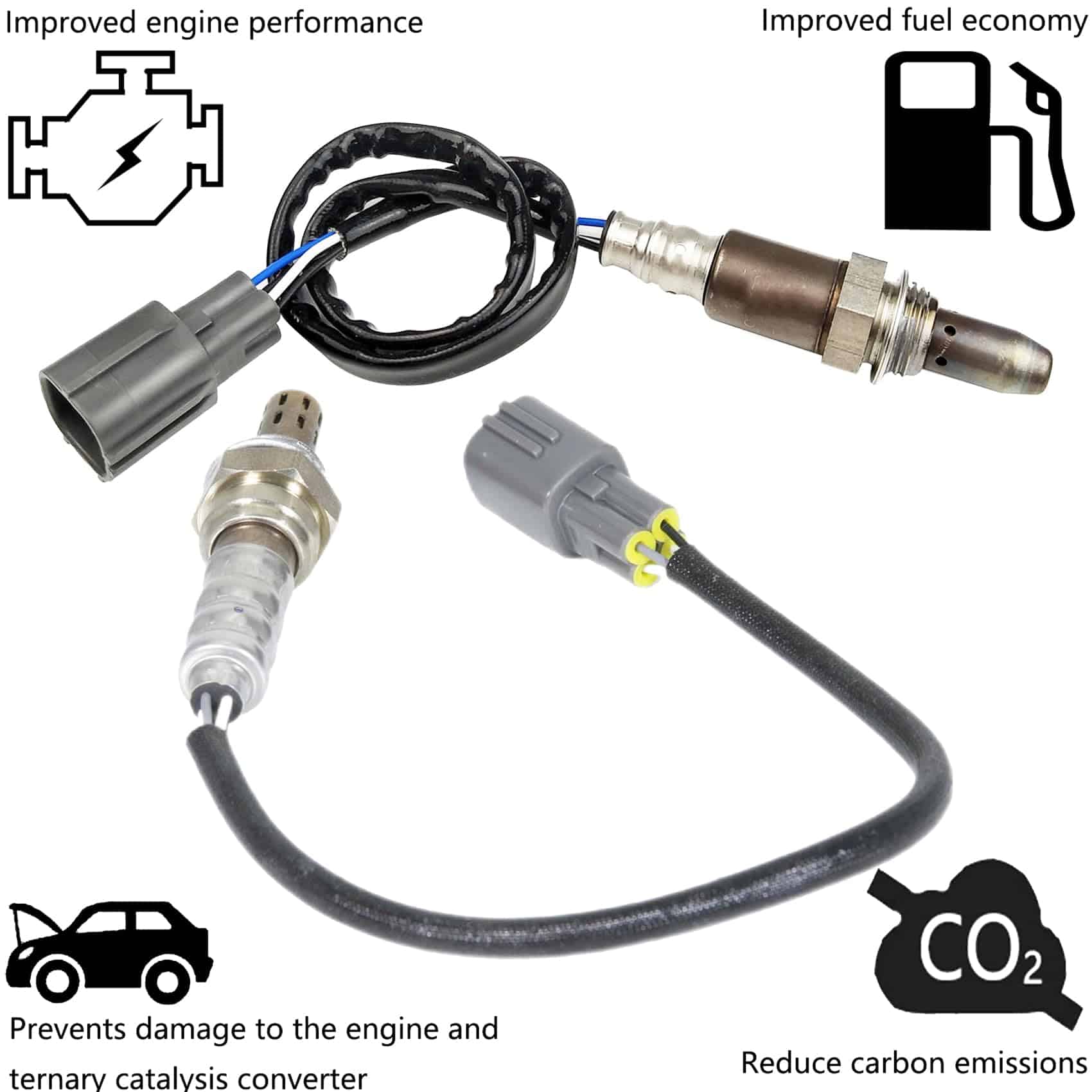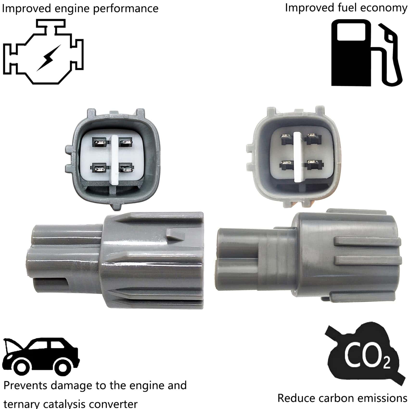 Énfasis en la durabilidad, nuestro sensor de oxígeno está meticulosamente fabricado con materiales resistentes a altas temperaturas, asegurando tiempos de respuesta rápidos. El cuerpo de acero inoxidable de doble soldadura láser es completamente sumergible, formando un sello hermético para una longevidad extendida. Por favor, verifique su información del automóvil con Compatibility Garage (marca, modelo y nivel de acabado) y número OEM antes de comprar. Se ajustará a su vehículo cuando el enchufe y la longitud y posición sean iguales que su sensor de oxígeno original. La instalación es fácil, los sensores de oxígeno reemplazan perfectamente los componentes existentes en sus posiciones originales de instalación, sin necesidad de modificaciones. La instalación se simplifica en su vehículo, facilitada por roscas pre-recubiertas que contribuyen a un proceso de instalación suave y eficiente. Consejo: Sensor 1 de banco 1 corriente arriba derecha / trasera; Sensor 1 de banco 2 corriente arriba izquierda / delantera; Sensor 2 de banco 1 corriente abajo derecha / trasera; Sensor 2 de banco 2 corriente abajo izquierda / delantera; sensor 1 corriente arriba, sensor 2 corriente abajo.