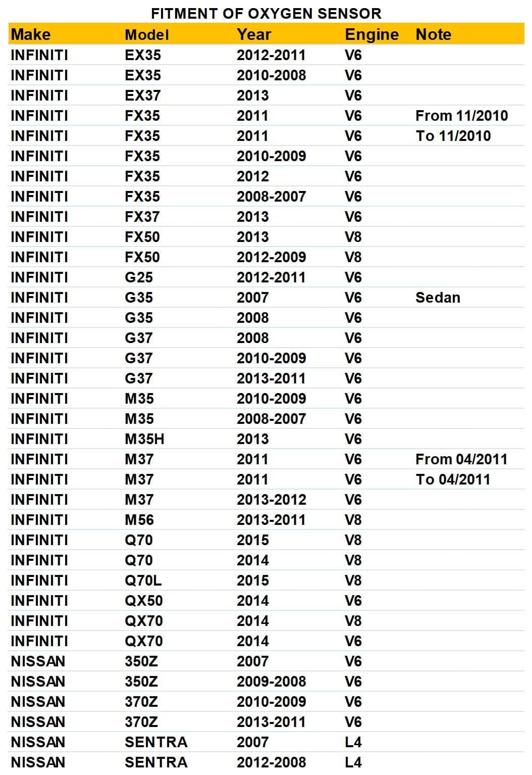 3. Aplicación de Repuesto para Infiniti EX35 2012-2011 3.5L,EX35 2010-2008 3.5L,EX37 2013 3.7L,FX35 2011 Hasta 11/2010 3.5L,FX35 2011 Desde 11/2010 3.5L,FX35 2012 3.5L,FX35 2010-2009 3.5L,FX35 2008-2007 3.5L.