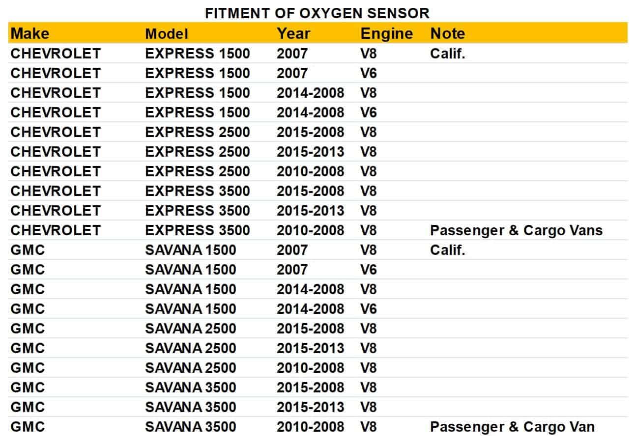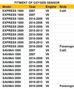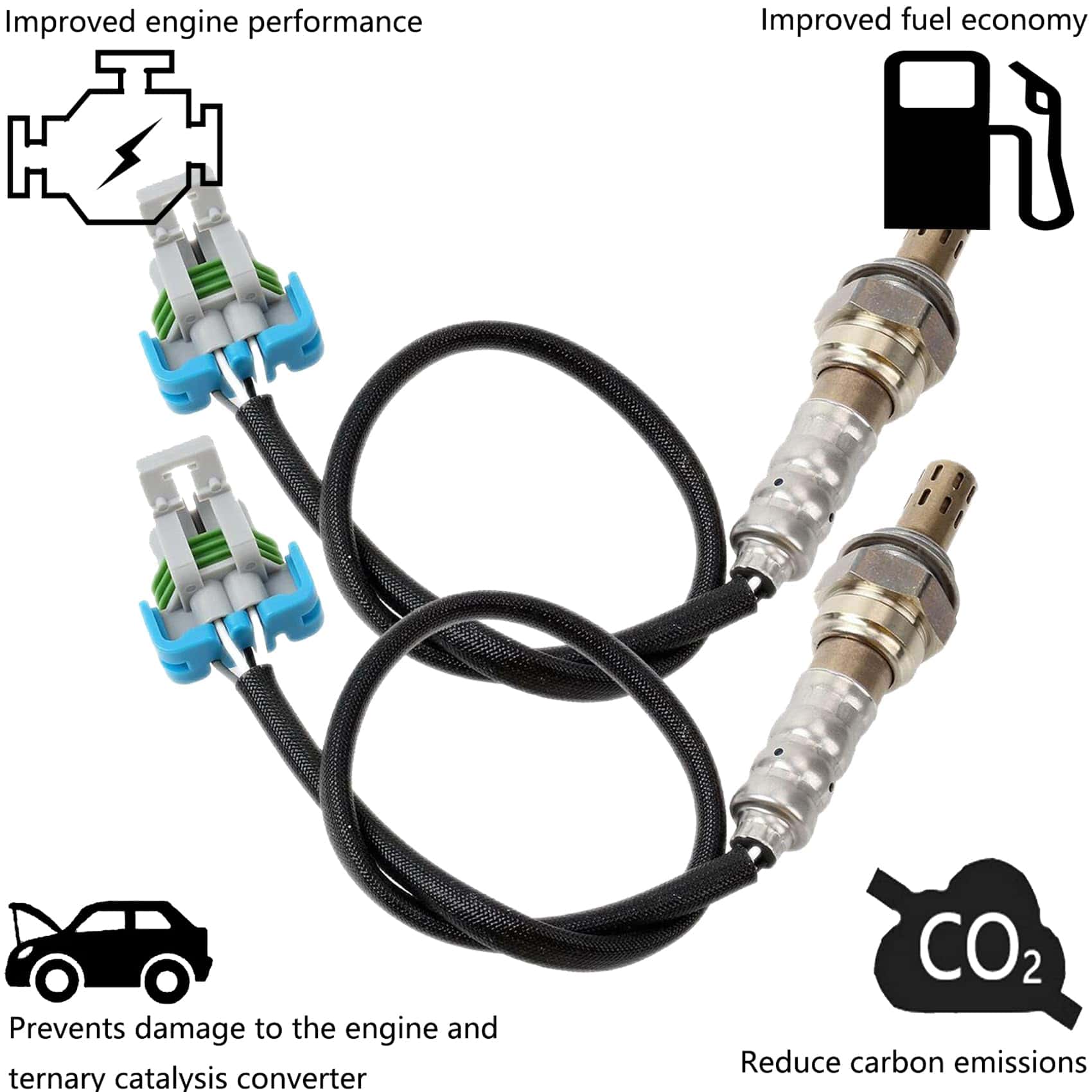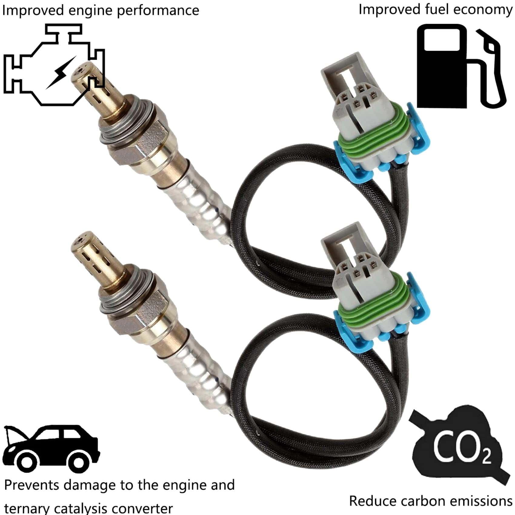 Reemplaza#234-4336 213-3632 75-3701. Juego de 2pcs. Aplicación de Repuesto para Chevrolet Express 1500 2007 4.3L, Express 1500 2007 Calif. 5.3L, Express 1500 2014-2008 4.3L, Express 1500 2014-2008 5.3L. Aplicación de Repuesto para Chevrolet Express 2500 2015-2008 4.8L, Express 2500 2015-2013 6L, Express 2500 2010-2008 6L, Express 3500 2015-2008 4.8L, Express 3500 2015-2013 6L, Express 3500 2010-2008 Furgonetas de Pasajeros y de Carga 6L. Aplicación de Repuesto para Gmc Savana 1500 2007 4.3L, Savana 1500 2007 Calif. 5.3L, Savana 1500 2014-2008 4.3L, Savana 1500 2014-2008 5.3L, Savana 2500 2015-2008 4.8L. Aplicación de Repuesto para Gmc Savana 2500 2015-2013 6L, Savana 2500 2010-2008 6L, Savana 3500 2015-2008 4.8L, Savana 3500 2015-2013 6L, Savana 3500 2010-2008 Furgoneta de Pasajeros y de Carga 6L. Por favor, verifique la información de su automóvil con Garage de Compatibilidad (marca, modelo y nivel de acabado) y número OEM antes de comprar. Se ajustará a su vehículo cuando el enchufe, la longitud y la posición sean iguales a su sensor de oxígeno original. Los Sensores de Oxígeno reemplazan perfectamente los componentes existentes en sus posiciones de instalación originales, sin necesidad de modificación. La instalación se simplifica en su vehículo, facilitada por roscas pre-revestidas que contribuyen a un proceso de instalación suave y eficiente. Sensor 1 de Banco 1 Arriba a la Derecha/Atrás; Sensor 1 de Banco 2 Arriba a la Izquierda/Adelante; Sensor 2 de Banco 1 Abajo a la Derecha/Atrás; Sensor 2 de Banco 2 Abajo a la Izquierda/Adelante; sensor 1 Arriba, sensor 2 Abajo. Haciendo hincapié en la durabilidad, nuestro sensor de oxígeno está meticulosamente fabricado con materiales resistentes a altas temperaturas, garantizando tiempos de respuesta rápidos. El cuerpo de acero inoxidable doblemente soldado con láser es completamente sumergible, formando un sello hermético para una longevidad extendida.